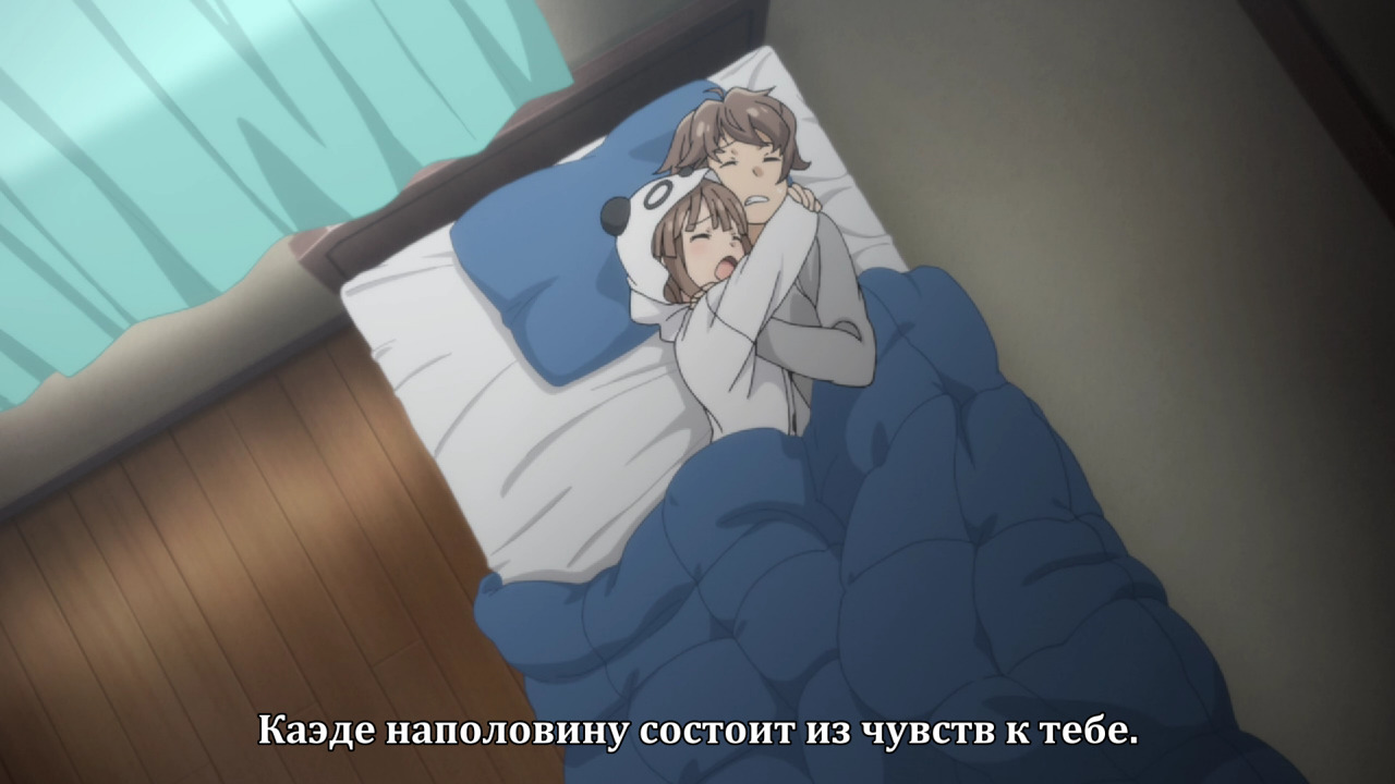 И, конечно, отношения двух школьников с бурлящими гормонами, настолько целомудренны, словно они приняли целибат. Несмотря на то, что физическая любовь в аниме уже давно не проблема, а секс между персонажами был даже в эталоне мейнстрима - САО, авторы твердо держатся высоких моральных принципов и отношения между героями останутся строго платоническими, а вершиной физической близости станут обнимашки.