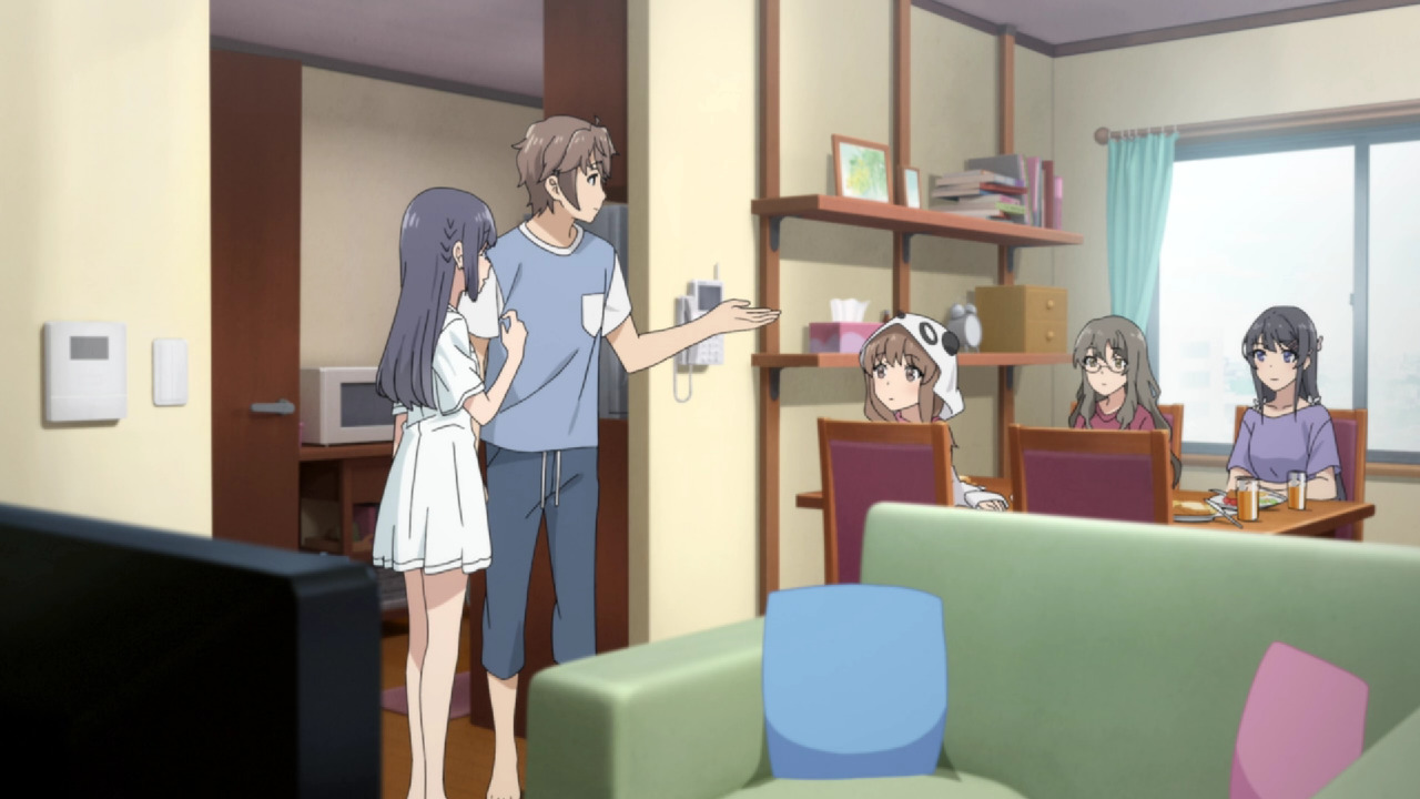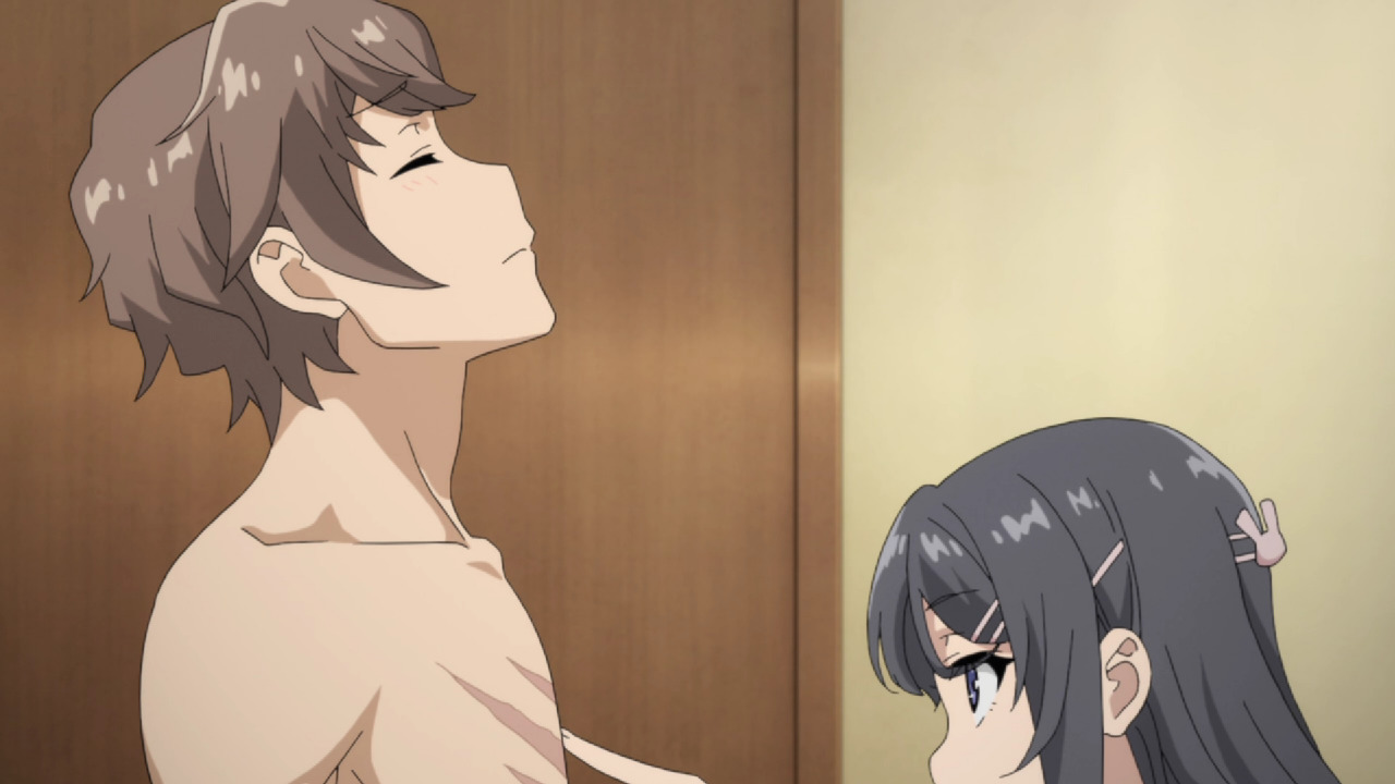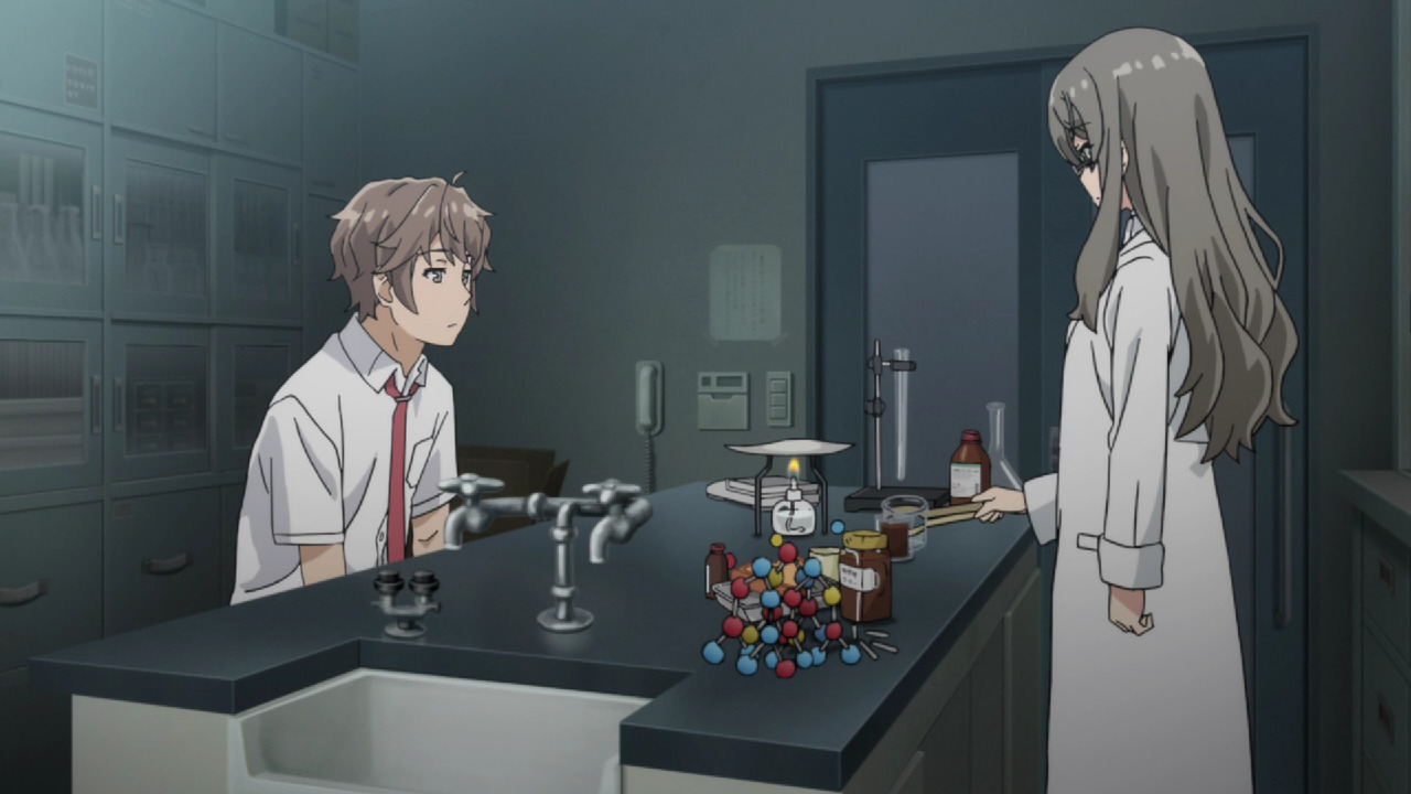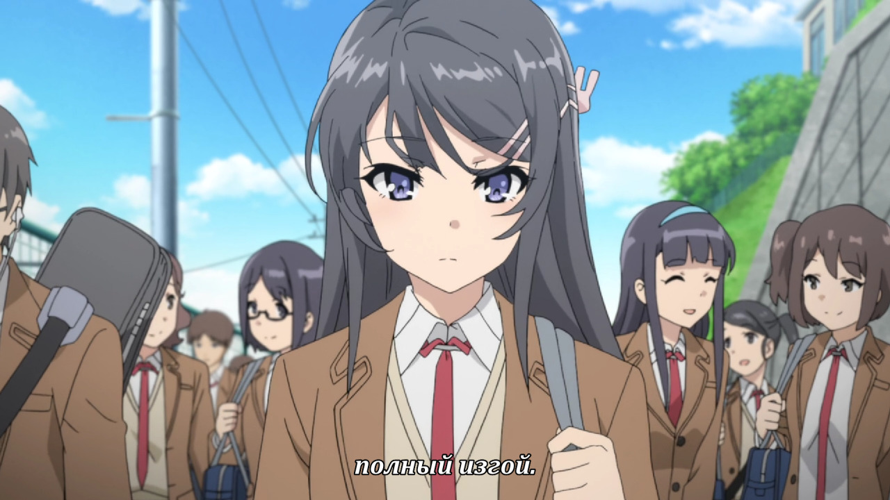 Вообще, в процессе просмотра возникает стойкое ощущение, словно изначально вся история сводилась к арке Маи, а потом автор посмотрел гатарей и решил сделать тоже самое - настолько разителен контраст между первыми тремя и последующими сериями. В персонажей Сакуты и Маи изначально была попытка привнести оригинальность. Типичному меланхоличному ОЯШу Сакуте добавили здоровый цинизм и язвительность, он способен на решительные поступки и двигает сюжет, а не плывет по нему. Маи, конечно, цундере, но с сильно сниженным градусом неадеквата и уже близка к полноценному персонажу. Да и связанные с ней сюжеты наиболее адекватны.