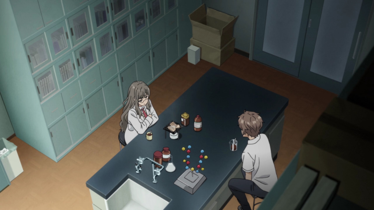Кроме контраста между тремя первыми и последующими сериями, обращает на себя внимание фантастическая лень сценариста и, вероятно, автора оригинального ранобэ. Зачем прописывать мотивацию персонажам, отвечая на очевидный вопрос, "как кинозвезда сблизилась с заурядным парнем?", если есть универсальный ответ "пубертатный синдром"? Грамотно вписывать экспозицию в сюжет? Пфф, зачем? У нас будет специально обученная кудере-меганэкко в лабораторном халате, с выдающимися эм... вторичными половыми признаками, которая будет вываливать эту самую экспозицию на зрителя, аки самосвал БелАЗ, при этом заваривая кофеек в колбах. Как настоящая ученая (хотя, что эта ученая делает, кроме готовки на лабораторном оборудовании, нам, разумеется, не покажут)!