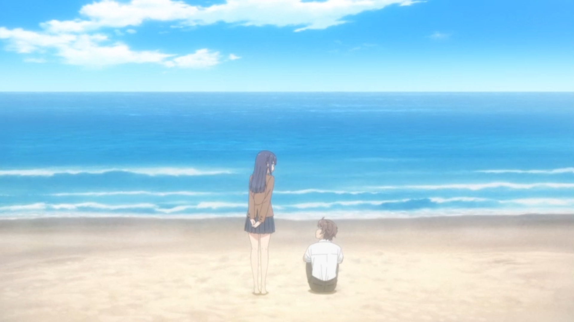Аниме-сериал по "Свину" мне удосужилось посмотреть около 2-ух лет назад и поначалу, да и до сих пор, я не понимал весь хайп этого "серийника". Да, за словом в карман не лезущий, остроумный гг, да, милашка Май, но это мало, чтобы назвать тайтл "гениальным". Задумка с мистическими проблемами подростков, затрагивающие аж квантувую механику и теорию относительности Энштейна, считалась для меня нечто сюрриалистическим и совсем не подходящий к атмосфере идеей, а драма, которую автор пытался пехнуть туда и вовсе не дала мне посочувствовать нашим героям (кроме Май, конечно же. Даже иногда тревожился за неё.). Пока я не посмотрел фильм.