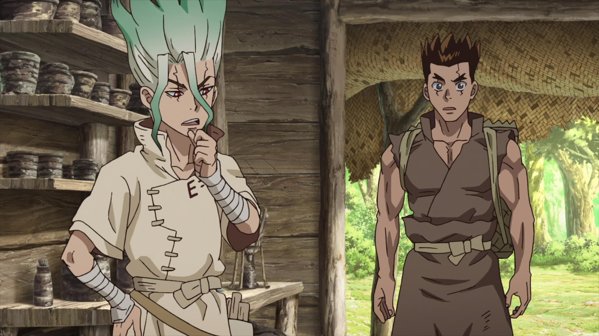 6. К 20м сериям я все больше и больше не понимал одного: как жители деревни понимали что вообще происходит. То есть люди буквально живущие в камяном веке резко начинают строить генераторы, лампы, телефоны, пистолеты и им норм? Вообще не понятно как жителю ко всему привыкали и подстраивались под реальность, паралельно помогая Сэнку. Я уже молчу о темпе, с которым они все это делали.