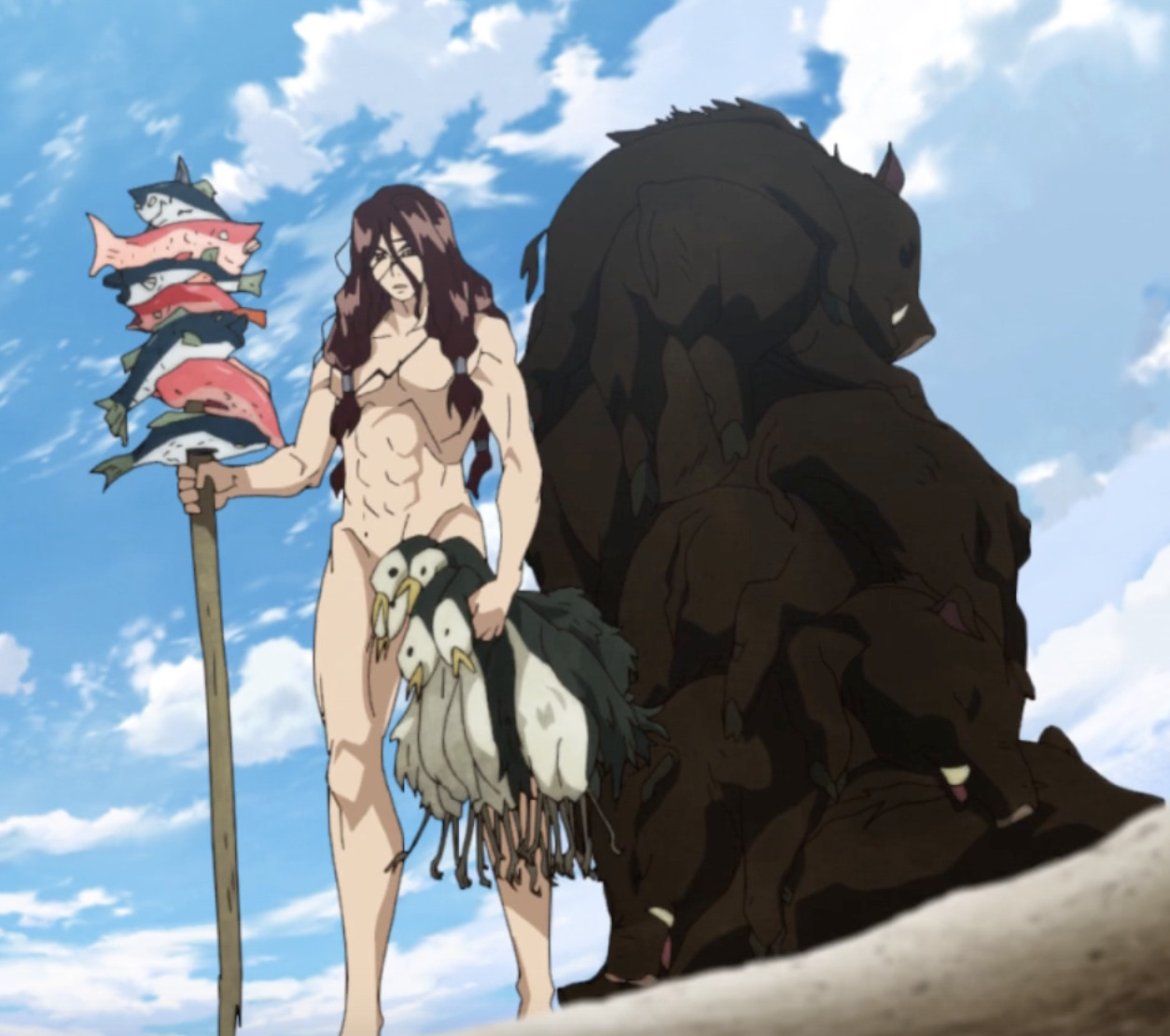 Конечно вайб от просмотра что-то с чем-то. Постоянно представлял и задумывался над тем: "А что было бы если бы я оказался на месте Сэнку", однако приходил бы к одному выводу - я бы не то что не смог бы развить цивилизацию, я бы даже выжить вряд ли смог. Однако погружение зрителя в этот мир "выживания" только прибавляет интерес к просмотру Фейлы