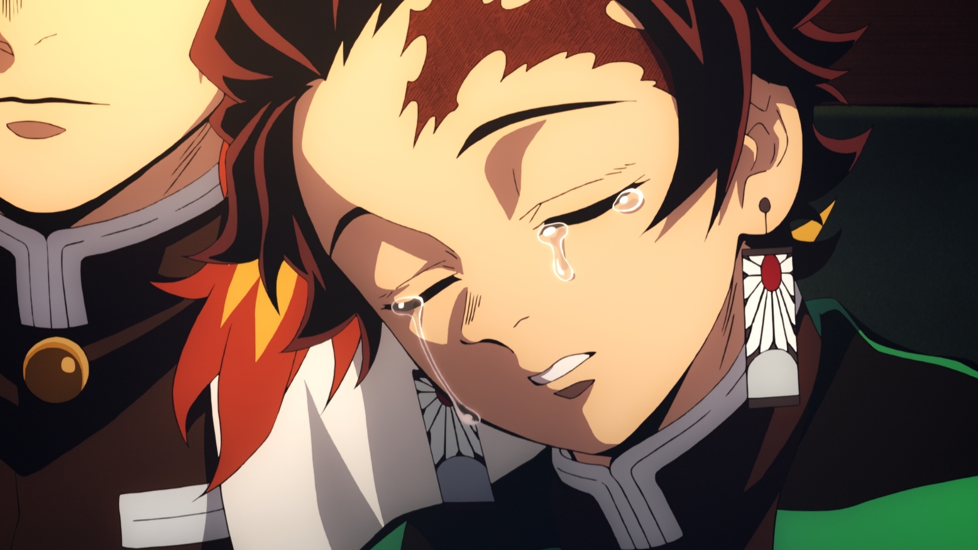 В сериале Тандзиро толком не рефлексировал о смерти своей семьи, что странно для мальчонки. В этом же фильме он преодолевает своё чувство вины по поводу произошедшего и не без сожаления принимает прошлое таким, какое оно есть. Хотя логичнее было сделать это намного раньше. Чем-то напоминает ситуацию с Субару в ReZero, когда о подобной же проблеме вспомнили во втором сезоне. Смирение Тандзиро параллелится и смирением мальчика, болеющего туберкулезом, который впечатляется мужеством главгероя.