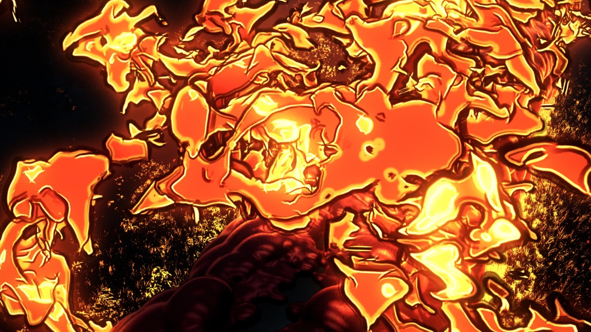 В то время как сериал был сосредоточен в основном на эффектах воды, заставляя их выглядеть так, как будто они сошли прямо с картин Хокусая, «Поезд "Бесконечный"» сосредотачивается на эффектах огня.