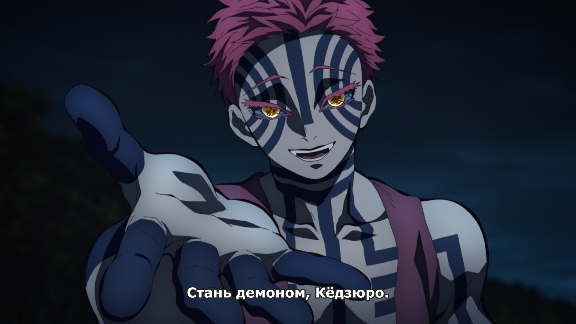 Но стоит отдать должное. Использует свои, пускай и ограниченные, способности к гипнозу Эмму в битве с Тандзиро хорошо. Например, сначала демон показывает герою сладкие сны, в которых хочется остаться, пока приспешники демона охотятся за ядрами сознания, а уж в последующем столкновении играется с кошмарами, давящими на самые больные точки Тандзиро, которые действительно могли бы морально уничтожить главгероя.