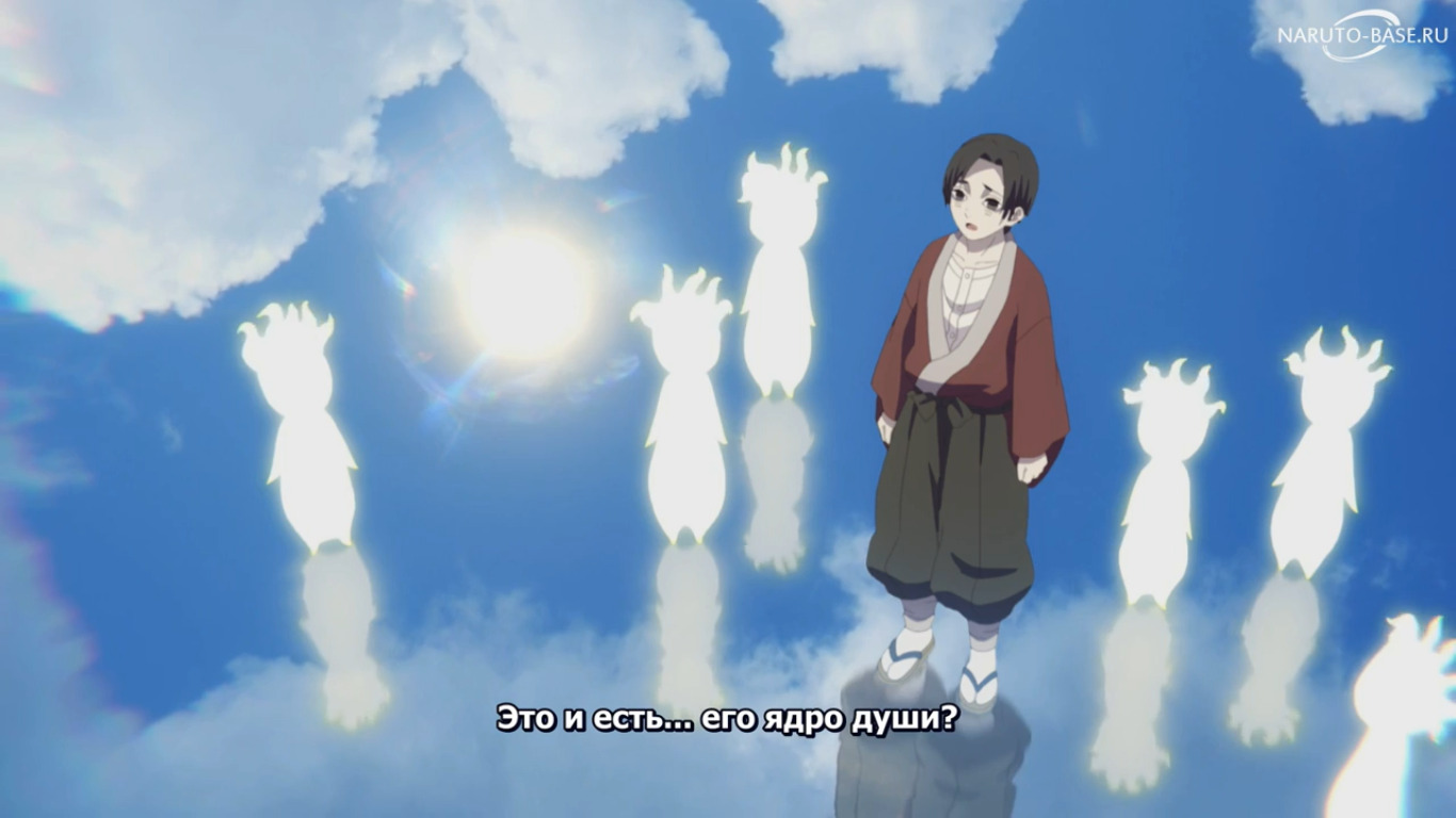 Чуть выше вы могли видеть кадры с подсознанием Танджиро. Его ядро души представлено в виде солнца (яркого, но не большого, дающего какое-то внутреннее умиротворение, как и солнечные танджайчики (?)). Иными словами, несмотря на всё, что переживает герой в этом фильме, внутренне он сохраняет душевный покой. У него нет тайн или пороков, поэтому в душе Танджиро "зеркальный пол". Это место очень сильно напомнило Канеки Кена (которого, к слову, также озвучивал Нацуки Ханаэ). Так вот в зеркальном отражении своего подсознания Канеки Кен виде свою истинную сущность. Какая же сущность у Танджиро не особо понятно, но ядро души характеризует его, как светлого человека, спокойного и не бросающегося словами направо и налево. Это, я считаю, высшая грань нарутотерпии, которая вам известна (ментально сломить врага, доказывая ему, что он на самом деле не плохой человек).