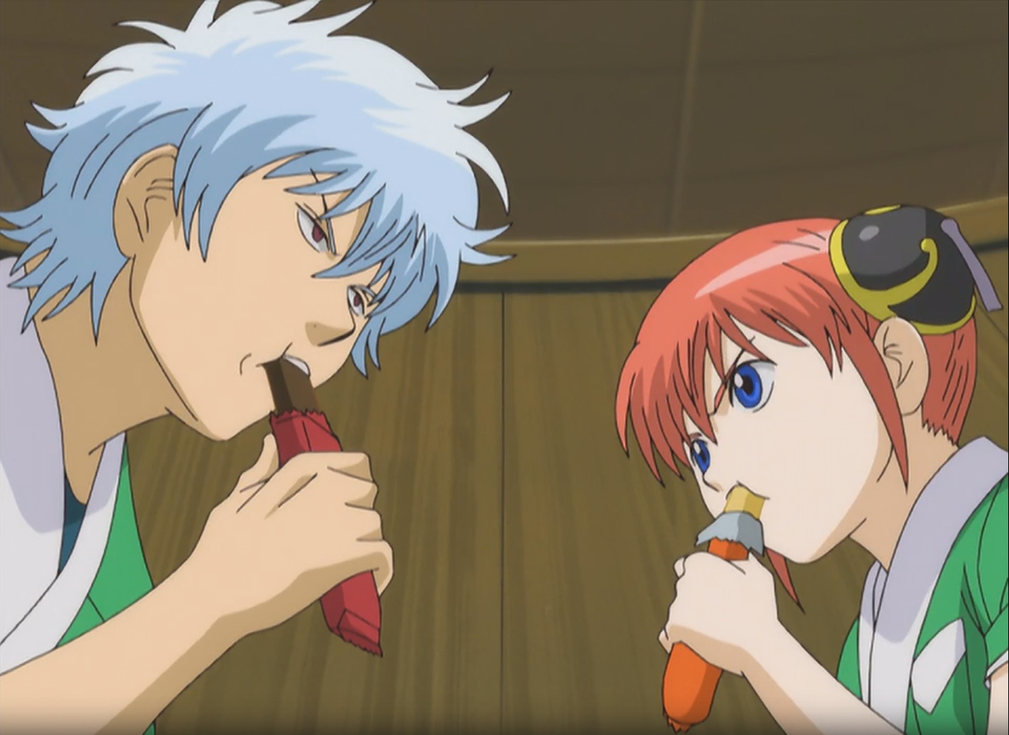 Кроме рыжих волос, китайского наряда и неизмеримой силы, Кагура запоминается бездонным желудком, который вмещает себя тонны чашек риса. Думаю, что всё-таки это оправдывается её силой, ведь, снося целый квартал одним ударом, нужно и кушать хорошо.