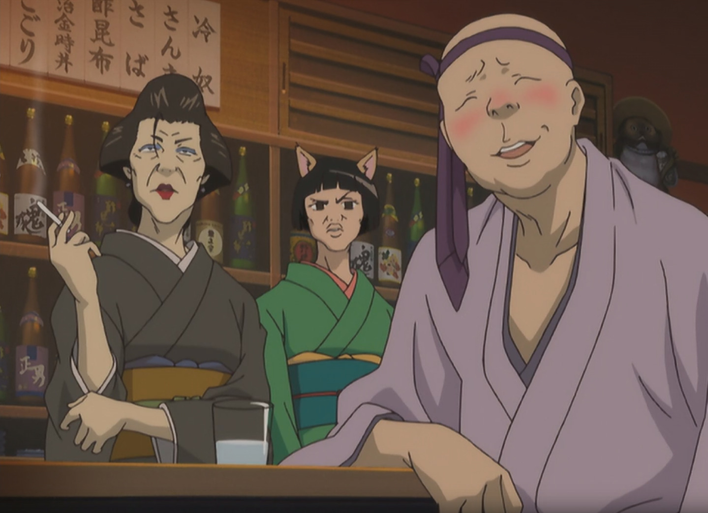 Так, с основными лицами закончили. Теперь можно пройтись и по второстепенным персонажам. Их можно разделить на 3 группы: работники бара Отосэ, друзья и знакомые, члены Синсэнгуми. Начнём по порядку: