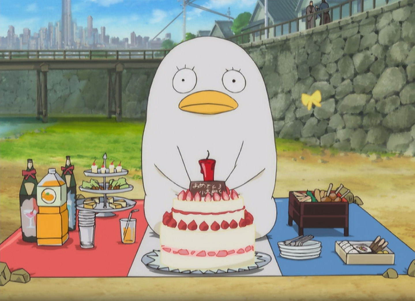 Также хочется добавить маленький факт, что большинство основных лиц основаны на японской истории. Так, Гинтоки - это Саката Кинтоки, Кагура создана на основе принцессы Кагуи из сказки "Повесть о старике Такэтори", а Шинпачи и члены Синсэнгуми - это реальные участники настоящих Синсэнгуми.