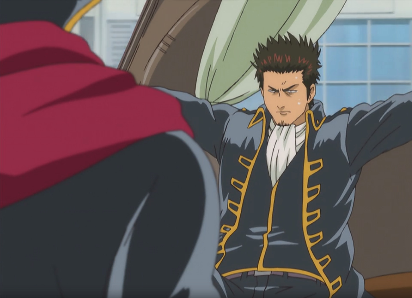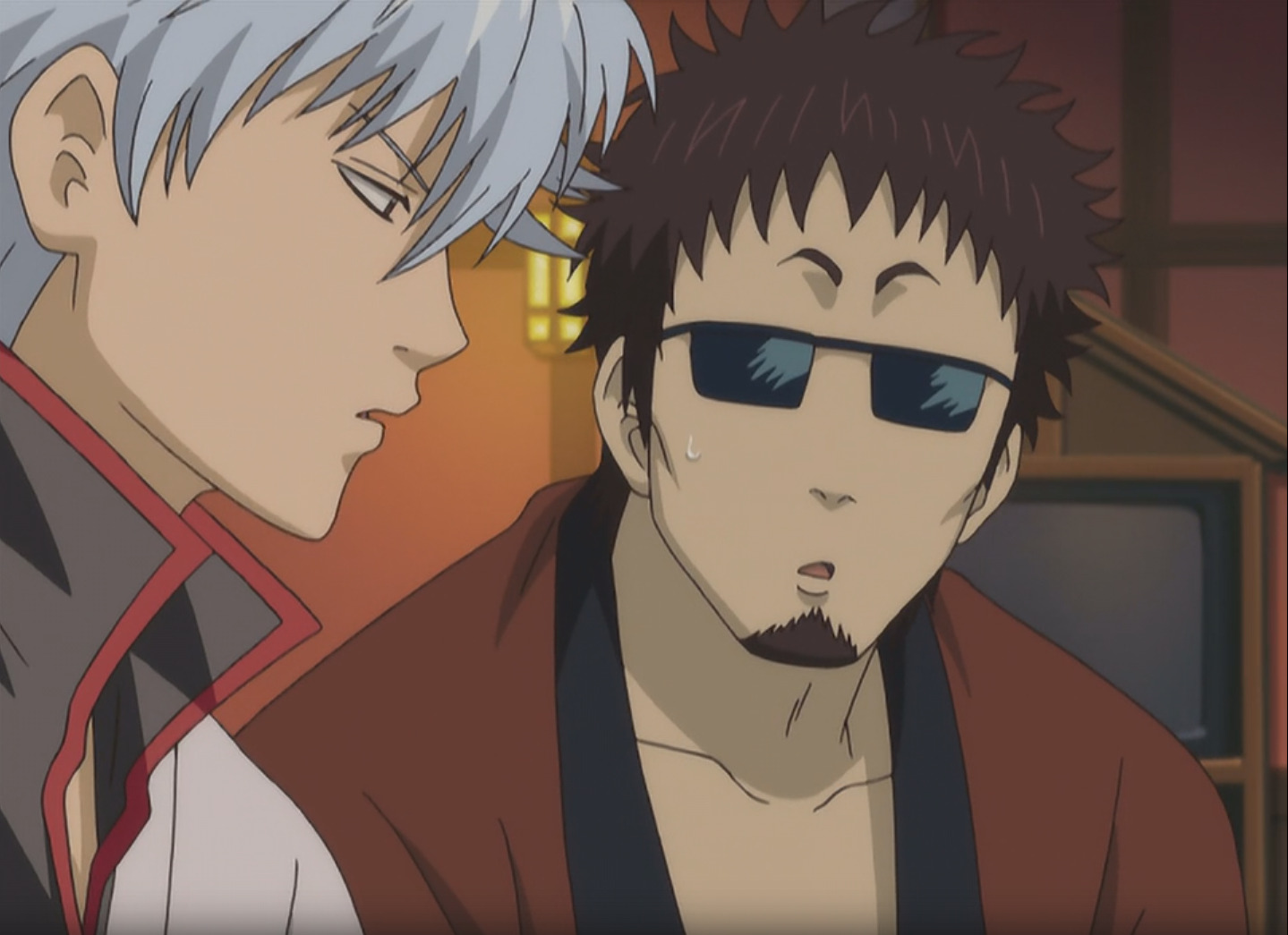 В первом сезоне 201 серия, каждая из которых наполнена юмором, но не каждая смыслом. Сюжетно интересных арок можно посчитать по пальцам одной руки, именно в них нам раскрывают детали мира и прошлое персонажей. Остальные серии чаще всего представляют собой заказы Йородзуии: то помогите беглому преступнику попасть на концерт, то последите за парикмахерской, то помогите мангаке популязировать его творение. Так как основной жанр всё-таки комедия, то можно понять, что герои чаще всего всё портят. Возьму для примера мини-арку про парикмахерскую. В ней Гинтоки решил сходить выпрямить свои волосы в старую парикмахерскую. Посетителей не было, так как на против открылся модный салон красоты, и у старого парикмахера не было работы. Он решил отойти в магазин за недостающим томом манги и попросил Йородзую приглядеть за лавкой. Кто же мог знать, что именно в этот момент и именно в этот салон мог зайти сёгун. Наши герои не смогли отказать ему, но постригать они естественно не умели. Всё закончилось издевательством над головой бедного сёгуна, но вся тройца успешно вышла сухой из воды.
