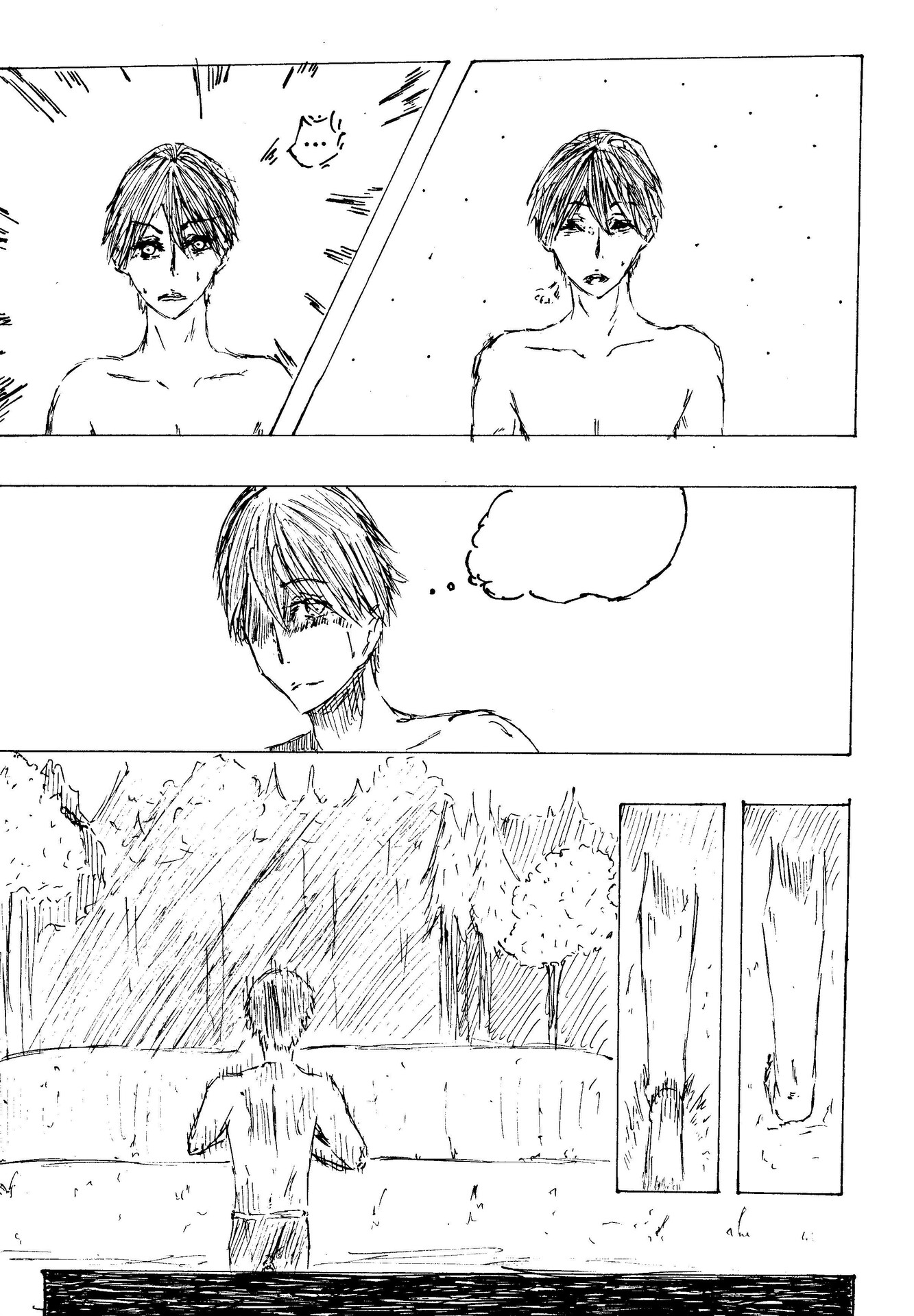 @Remanga enjoyer, ну.....я просто попытаюсь что-то вразброс накалякать@Loth, Делай своё. Чо там получается. и чо там хочется. Давай, мы можем заценить первые фреймы. Как братишки@Loth,@Loth@Remanga enjoyer, ок, ну.... за час примерно сделал 1 страницу -@Remanga enjoyer,@Klaeson@Remanga enjoyer, я немножко в фотошопе поработал ииии, хз, может быть не надо было...@Loth, Хорош. Фон сносный. Но над анатомией работать надо. Или это дерево бежит?@Loth,@Loth@Remanga enjoyer,@Remanga enjoyer, вот кстати именно в рисовании людей у меня проблемы@Remanga enjoyer@Loth, Можно просто не рисовать людей. на самом деле. Ну или научиться их рисовать@Loth@Remanga enjoyer, я думаю просто рисовать, и со временем рисовка улучшиться, как в обычных мангах и манхвах когда спустя главы рисовка улучшается@Remanga enjoyer@Loth, Давай. главное не сдаваться. Мы всем селом в тебя верим@Loth@Remanga enjoyer,@Loth, пробовал рисовать на память?@Loth, листве нехватает теней, но сам ствол нарисован очень даже неплохо.@Loth,@Loth@Klaeson, пон@Klaeson, а что насчёт этого@Klaeson@Loth, анатомию бы не помешало подучить, особенно эластику тела.@Loth,@Loth@Klaeson, да, думаю первые три страницы перерисую когда выучу анатомию@Klaeson,@Klaeson@Loth, вау. Даже не знаю. По-моему, всё хорошо. Единственное, что хотелось бы отметить, это объём цепей на теле, можно было их, конечно, побольше сделать, потому что выглядят, как татуировка, особенно это заметно на левом от героя плече, а так всё достаточно хорошо. Если твоя руманга выйдет в свет, то я лично выставлю наивысшую оценку за хороший рисунок, если паралельно с этим меня банально заинтересует сюжет.Совет, как читатель автору, - больше используй штрихи, ты очень умело ими пользуешься. Эксперементируй с ними, а также больше детализируй при большем контрасте предмета, т.е вырисовывай именно то, что ты хочешь больше выделить на фрейме (героя, предемет, фон). Ну ладно, не буду учить, думаю и сам знаешь.