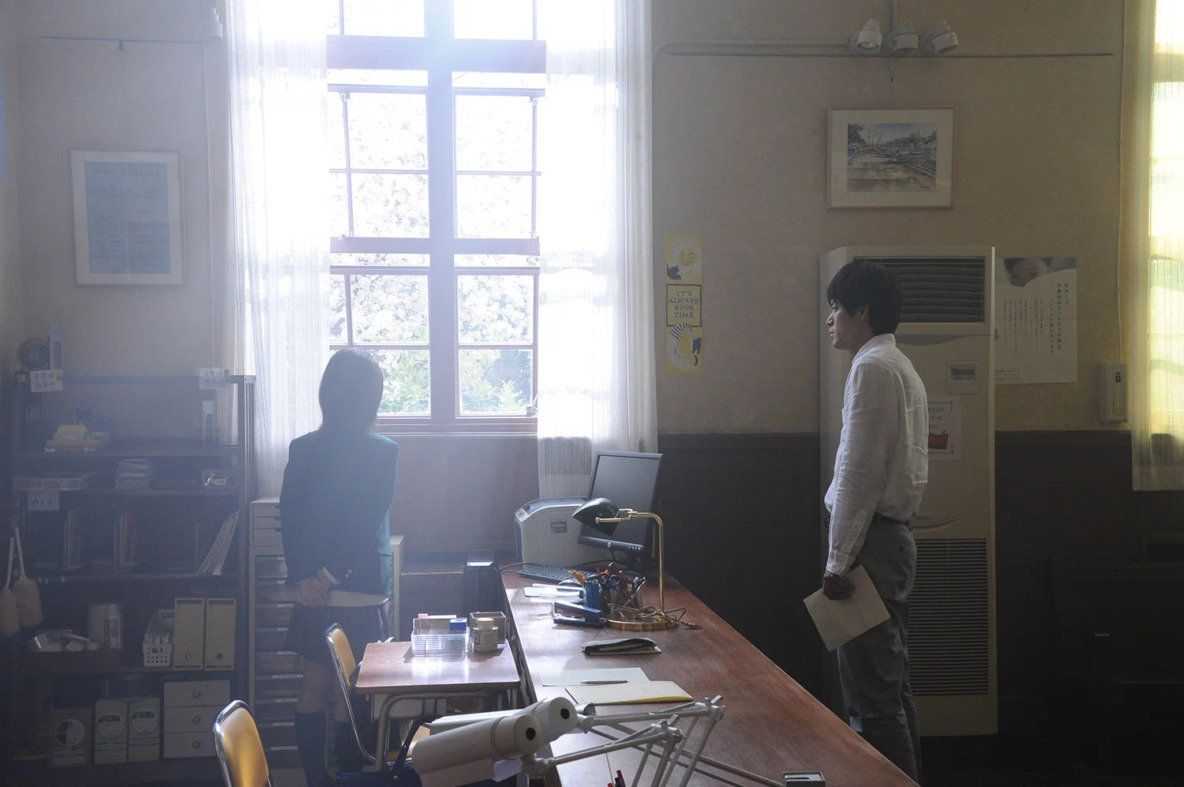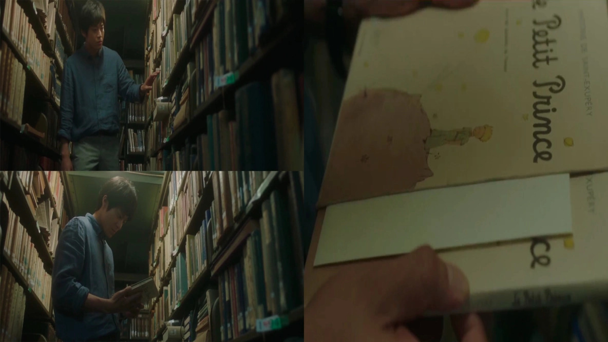 То самое последнее (секретное) напутствие, которое Харуки получает, когда ему отдают дневник Сакуры, создатели дорамы перенесли (чтобы работало их «новаторство») в её письмо, которое она, прямо перед своей неожиданной смертью, спрятала в книге («Маленький принц»), которую, в свою очередь, спрятала в школьной библиотеке, где они оба работали. И, возможно, это даже более подходящий ход для игрового фильма, ведь здесь не будут работать те же инструменты, что и в аниме версии (там есть потрясающая сцена «Маленький принц», но об этом в секторе про аниме), и, опять-таки, помогает работать «новаторству».