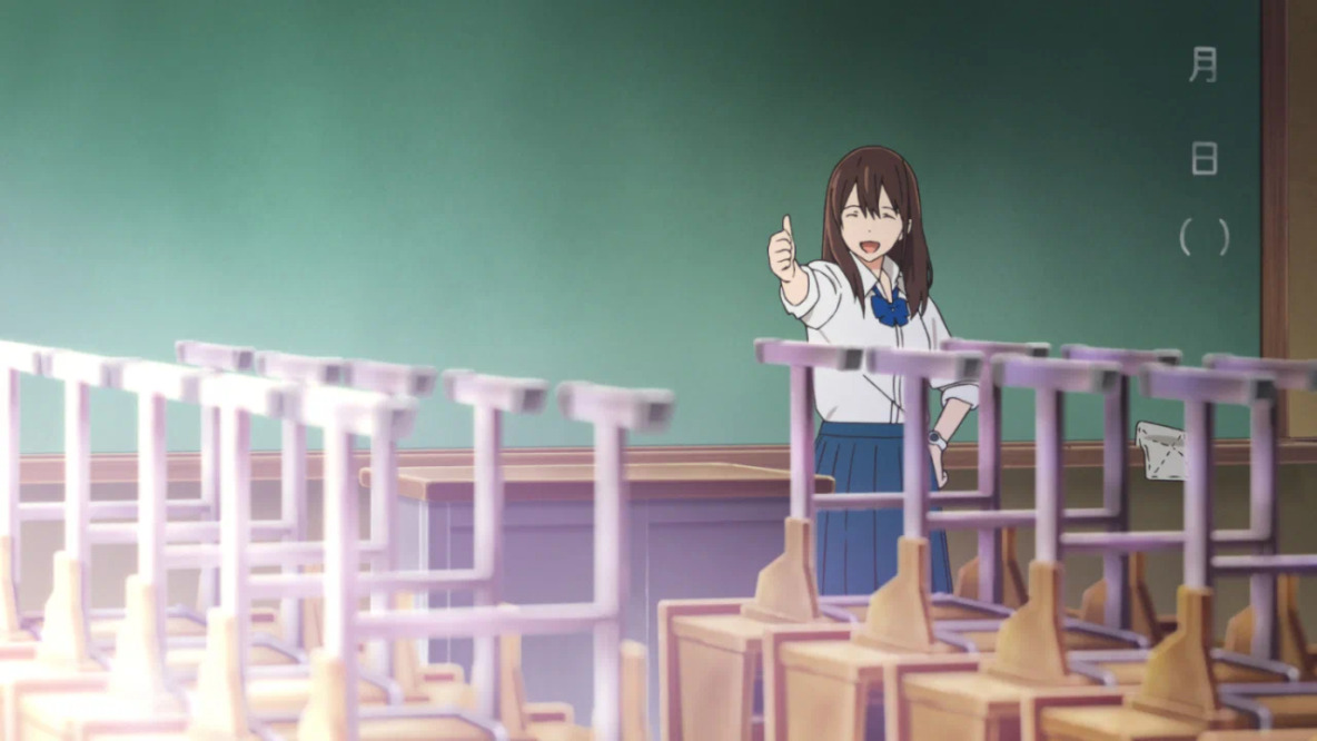 2) В лайв-экшне, опять-таки, лучше проработаны и представлены связи между персонажами, и особенно выделяются второстепенные (всё тот же одноклассник-жвачка, заимевший больше экранного времени), в частности Кёко, которая в «новаторстве» и вовсе вышла на первые планы; также отмечу того старосту-бывшего-парня, что приобрёл в себе и своих действиях больше смысла.