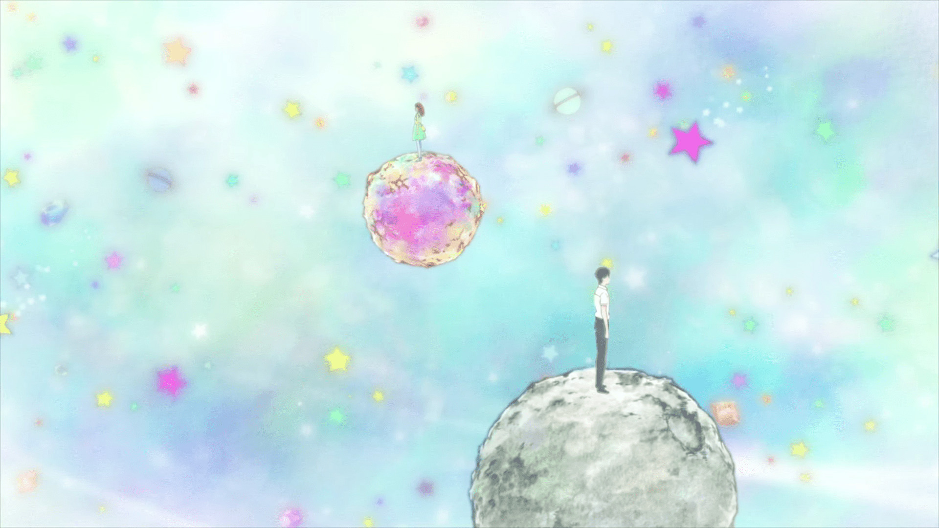 Это ведь анимация, потому и выбор инструментов больше, и способы их применения. Но в целом критических отличий и выборов в режиссуре и операторской работе я не увидел (в дораме, правда, некоторые (много) кадры пересветили, да, вот так вот, что ж). Однако, повторю, в аниме есть сцена «Маленький принц», которая… Ладно, всё о ней в соответствующем секторе.