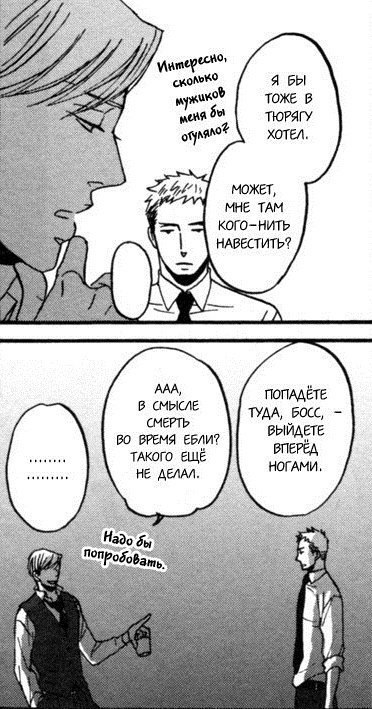 И еще кое-что Якудза офигенные мужики. Пожалуй пора переключится в мир Якудза В общем уйма впечатлений от этой манги и смех и горечь в одном,буду с нетерпением ждать новых глав