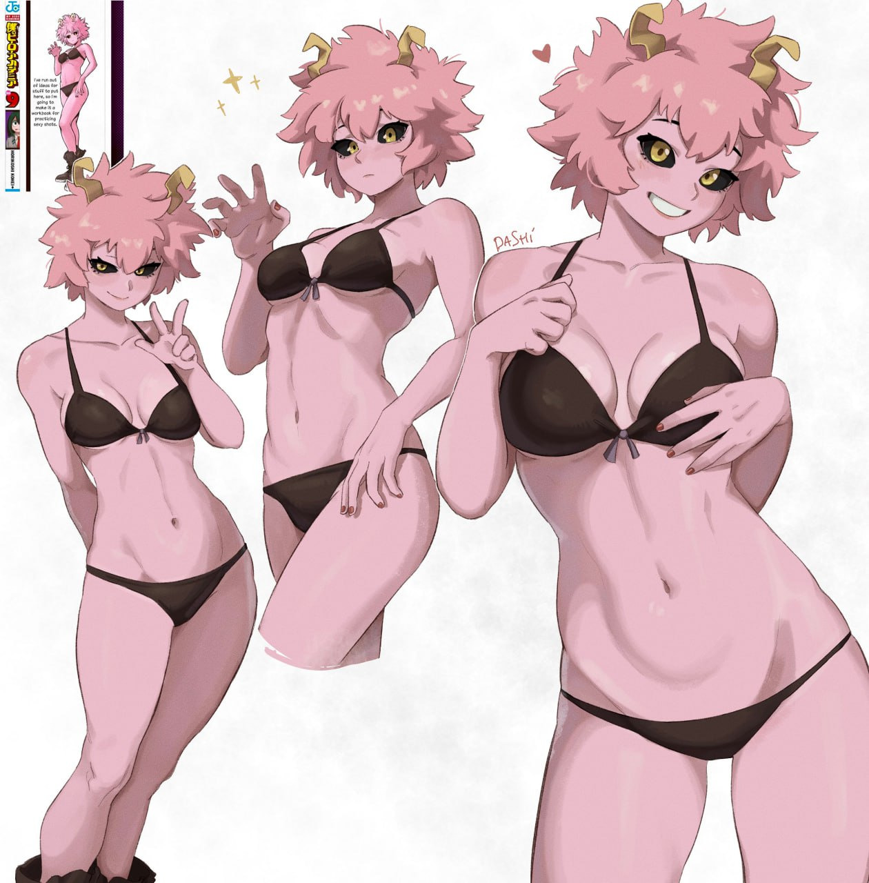 Одна из студенток академии Юэй. Очень весёлая девушка с вечной улыбкой на лице. Легко возбудима и эмоциональна, что заметно по её реакции на любое происходящее явление. Может радоваться как настоящий ребёнок предстоящей поездке, а также активно комментировать действия людей во время наблюдения за их битвами. Также у Мины очень необычная внешность, начиная с рожек на голове, которые сильно мешают во время водных процедур, и заканчивая чёрными склерами глаз и розовой кожей, ставшей такой из-за особенностей её причуды. Чаще всего носит футболки с надписью «Pinky» — её геройский псевдоним, который она выбрала на уроке героини Полночи.