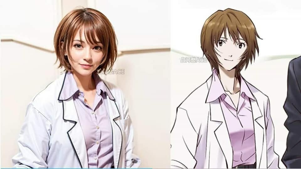 Приметы: имеет две версии внешности. Во флешбеках — мягкие черты лица, тёмные волосы средней длины, кроме того в сериале указывается на некоторое её сходство с Рей Аянами.