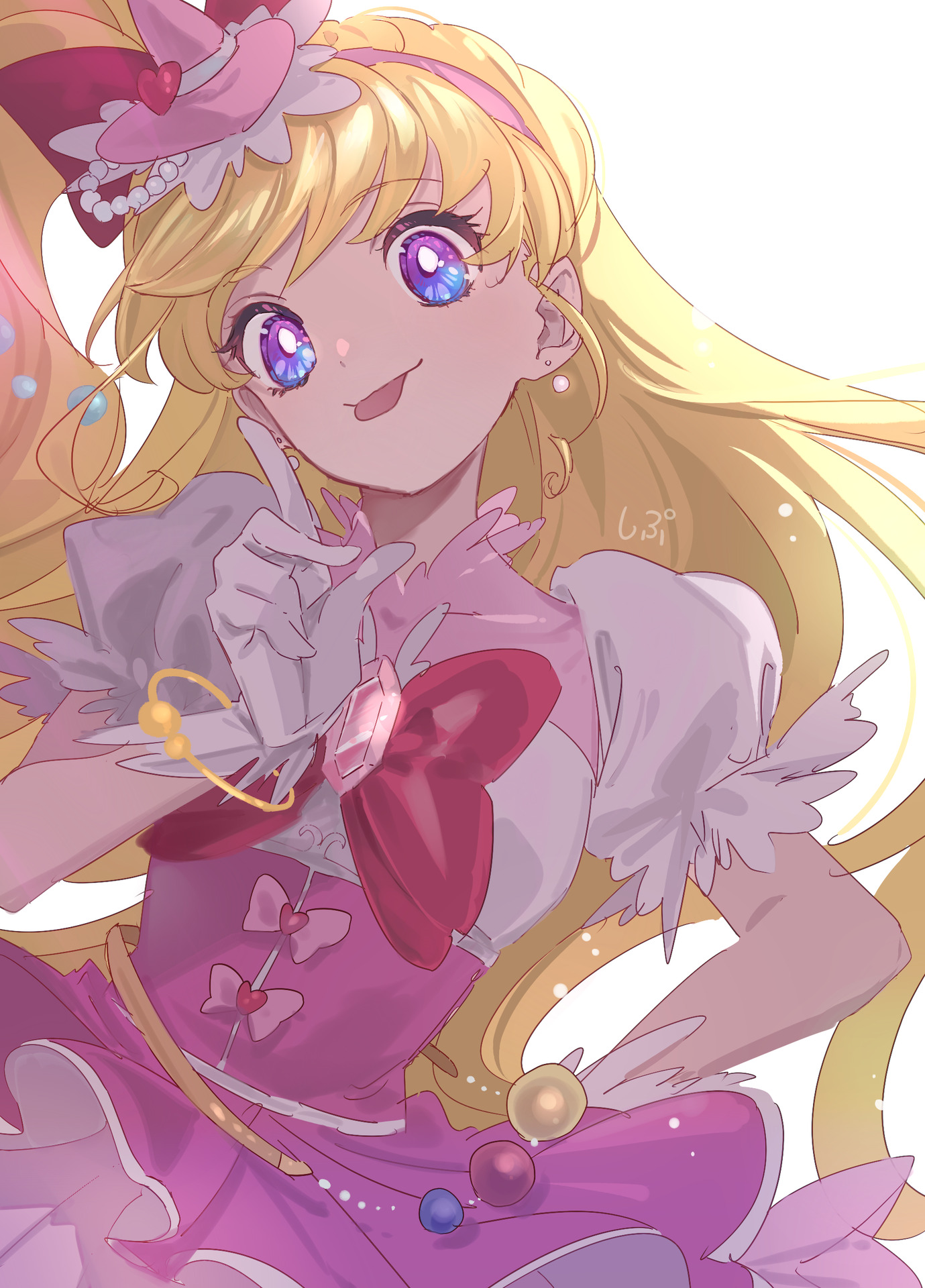 В Кюа-форме ее вид кардинально меняется. Она становится намного выше, выглядит значительно взрослее, волосы удлиняются и приобретают ярко-желтый цвет. На ногах она по-прежнему носит чулки и туфельки, хотя более изящные, сверху носит ярко-розовое платье с белым верхом и пышными белыми оборками, на голове у нее появляется тонкий золотой ободок, украшенный пышной брошью в виде небольшой магической шляпки розового цвета, длинный хвост также перехвачен красным бантом, только существенно больше размером. Прическа и пояс украшены небольшими разноцветными шариками, парящими на волшебной нити.