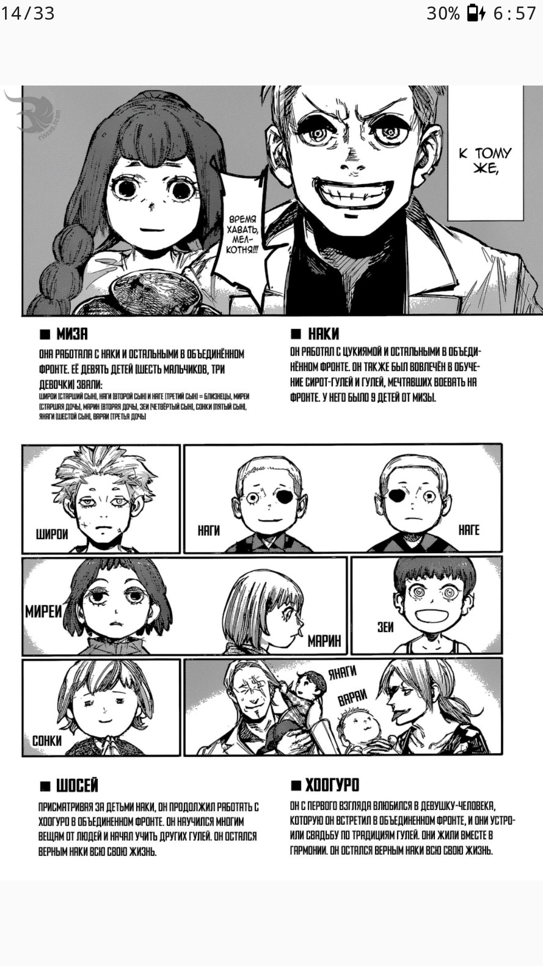 Руководительница «Древа Аогири». Также известна как «Тройной Клинок» благодаря характерному виду своего кагунэ; является нынешним лидером клана Клинков. Также работает на организацию «Чёрная Коза».