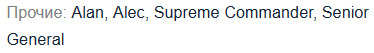 Alan, Alec, Supreme Commander, Senior General