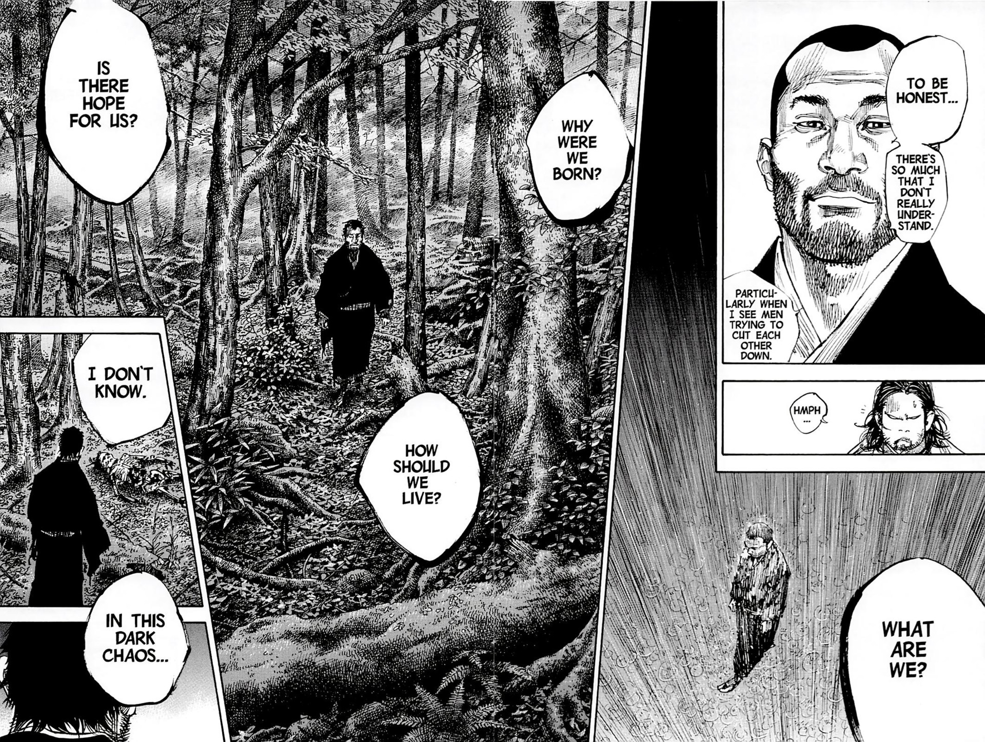 В манге сначала спасает и помогает сбежать, а затем обучает Такэдзо, нарекая его новым именем Миямото Мусаси.