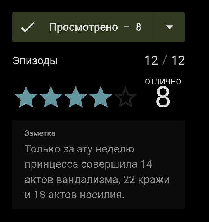 @Дно, ты её все действия записывала?@Дно@FreudMind, не я, а скорее всего Great Red SiberianВеликий красный Сибиряк. У меня просто эта цитата в заметках записана, она идеально описывает принцессу.
