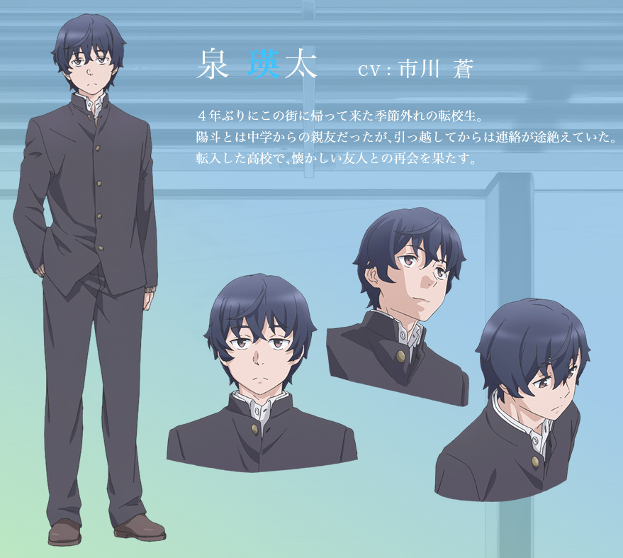 Главный герой, который возвращается в родной город спустя четыре года после того, как переехал, учась ещё в средней школе. Раньше они с Харуто были близкими друзьями, однако вскоре после переезда потеряли контакт друг с другом. После возвращения в старую школу встречается со старыми друзьями и пытается наладить с ними отношения.
