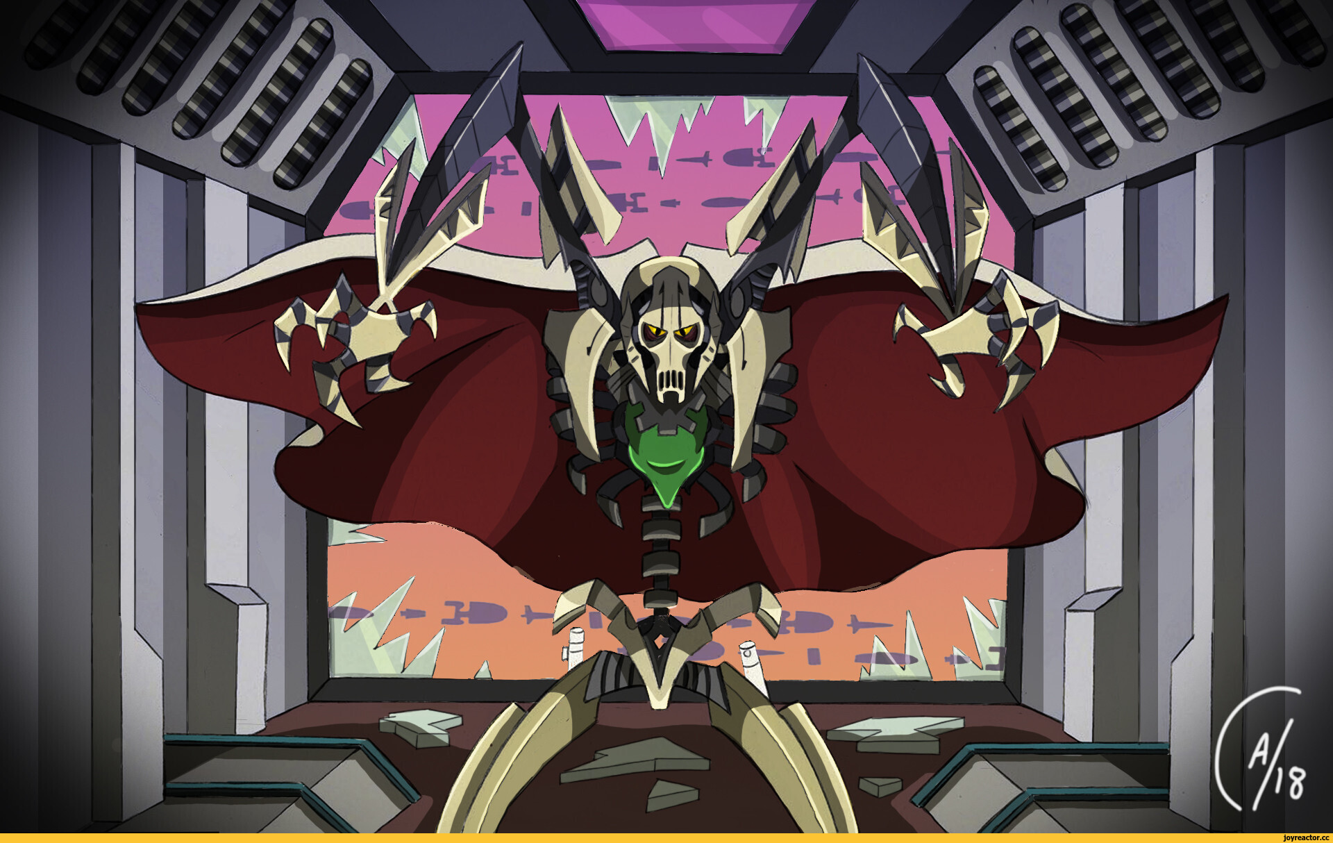 Кибернетизированный калишец, верховный главнокомандующий армии дроидов Конфедерации независимых систем. В качестве оружия использует трофейные световые мечи, которые забирает у убитых им джедаев.