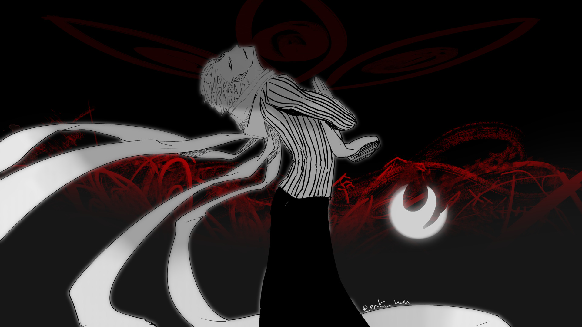 Первый, кого назвали кисин, то есть «богом-демоном». Синигами смог остановить Кисина за 800 лет до событий сериала: для этого пришлось содрать с него заживо кожу, поместить его в сделанный из неё мешок, построить сверху Академию и привязать свою душу к Городу Смерти.