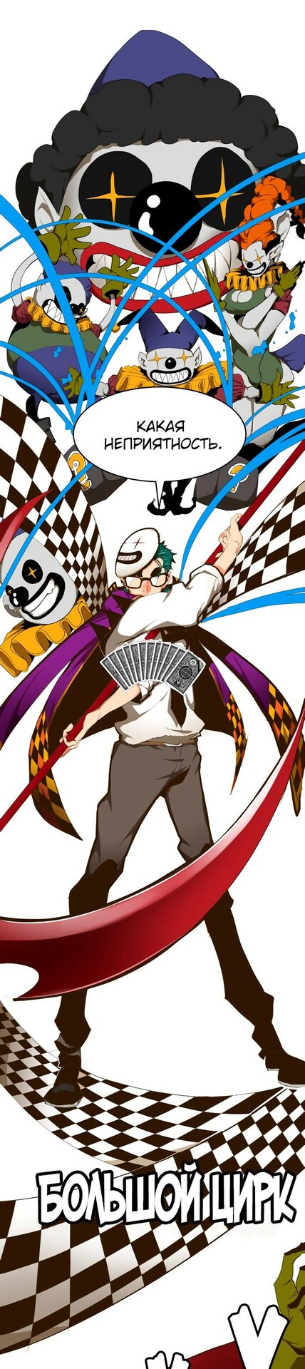 . Везде появляется с колодой игральных карт.