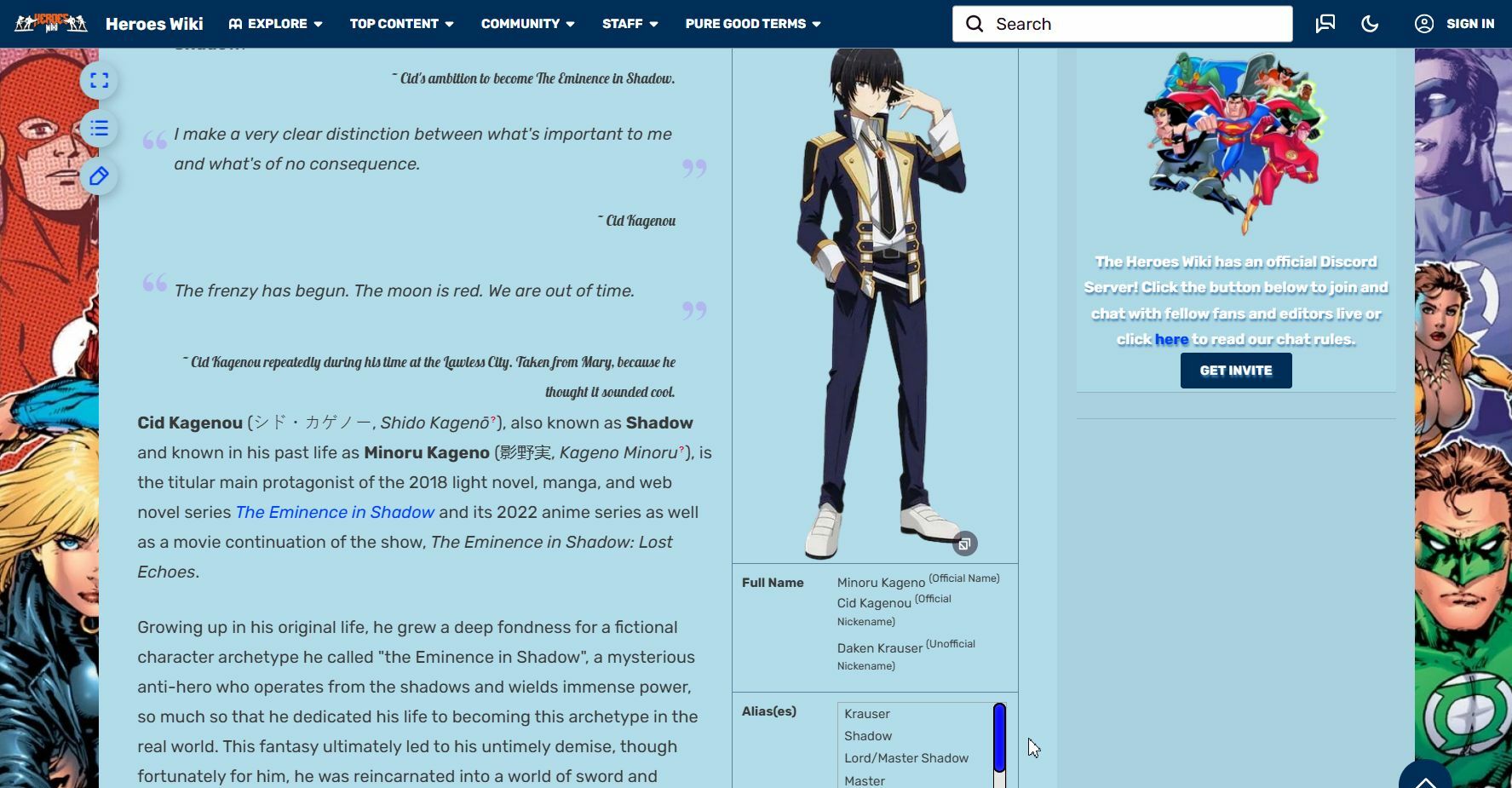 @MrZol, ну тоесть ты проигнорировал то, что он даже в последних сериях говорил о том, что сад теней "играют ради него в игры", плюс то, что на самом деле никакого культа диаблоса не существует, только он его выдумал, а все встреченные злодеи так же "подыгрывают ему".. в общем то в ранобе тоже самое, я прост прочел чуток дальше выпущенных сезонов аниме, и там такой же мрак.. чесгря именно это меня бесит в этом произведении, остальное - круть..@MrZol@One_bold,