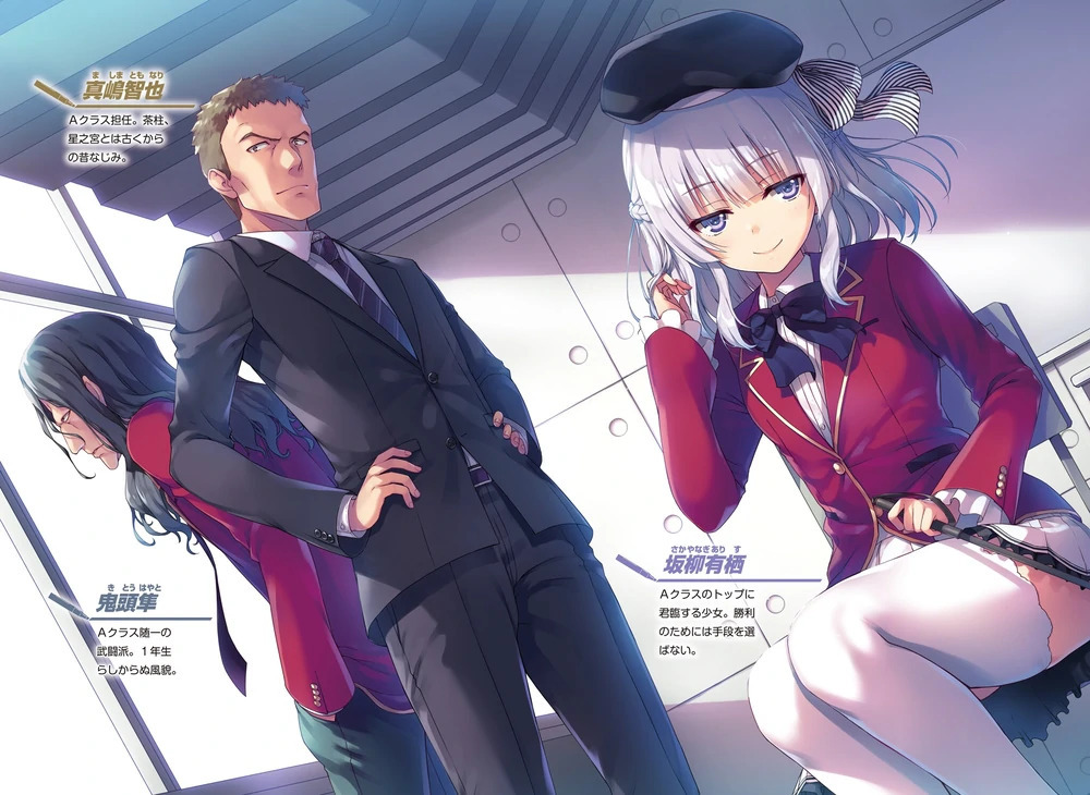 Руководитель класса Арису Сакаянаги. Суровый мужчина, ответственно выполняющий свою работу. Не терпит несправедливости среди учеников.