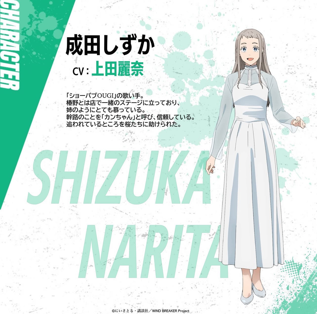 Шестнадцатилетняя певица, выступающая в баре в квартале красных фонарей. Близкая подруга Тасуку Цубакино. Хорошо справляется с любыми делами по дому от готовки до вышивки, однако её руки часто бывают в порезах.