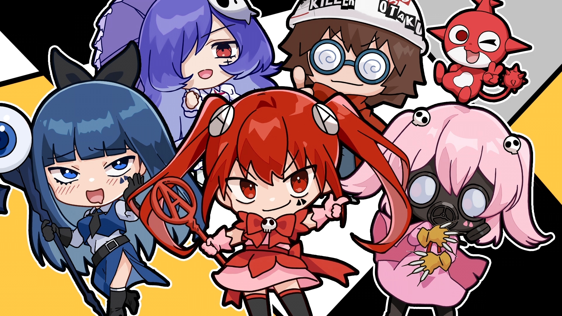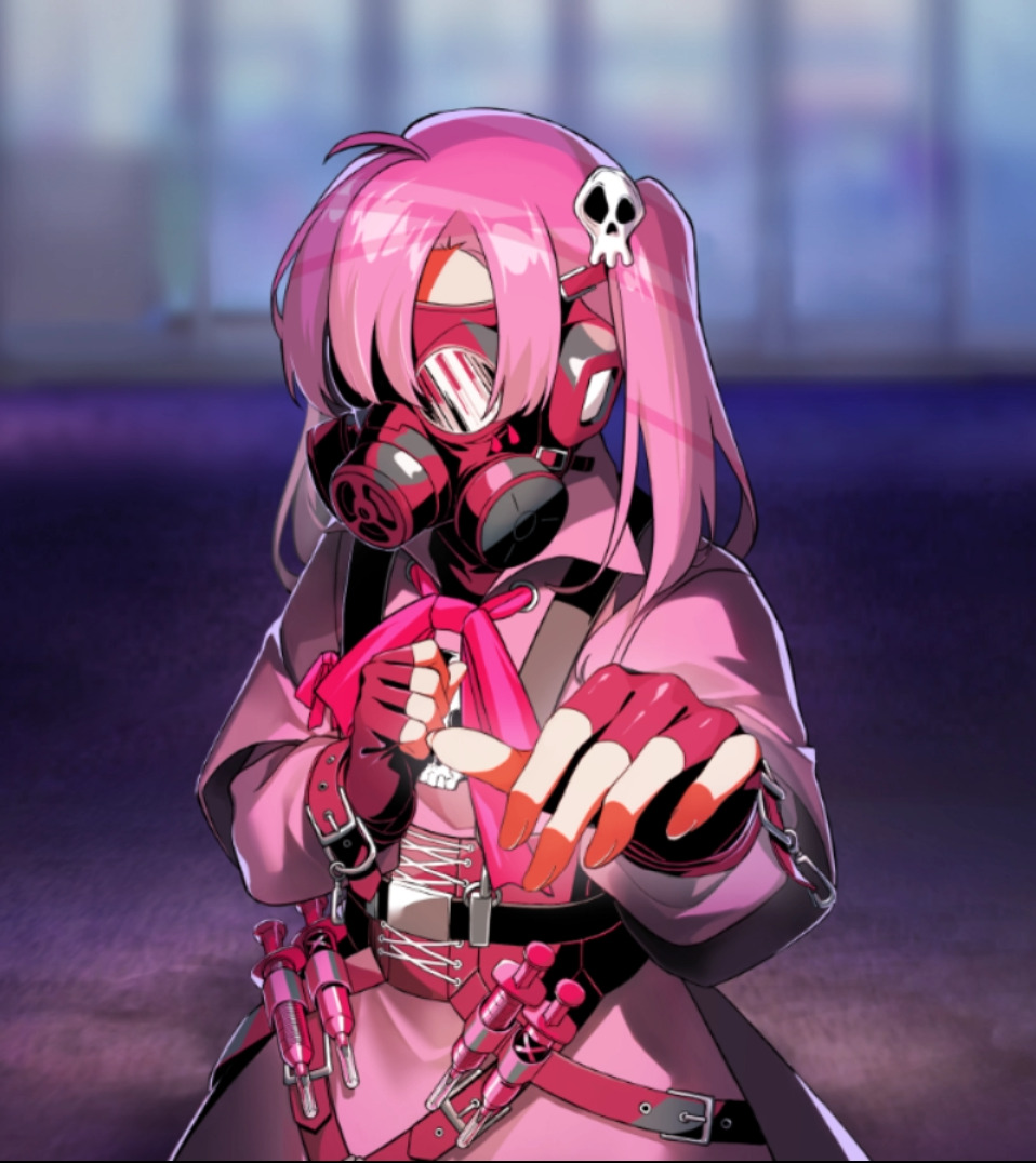 Девушка-волшебница, которая всегда носит противогаз, поэтому практически невозможно разобрать, что она говорит. Её невнятную речь способна расшифровать Блю. Увлекается медициной и разнообразными лекарственными препаратами, которые принимает и сама. Сражается на стороне революционеров-отаку, чтобы в мирном будущем стать горничной в косплей-кафе. Её оружие — огромный шприц.