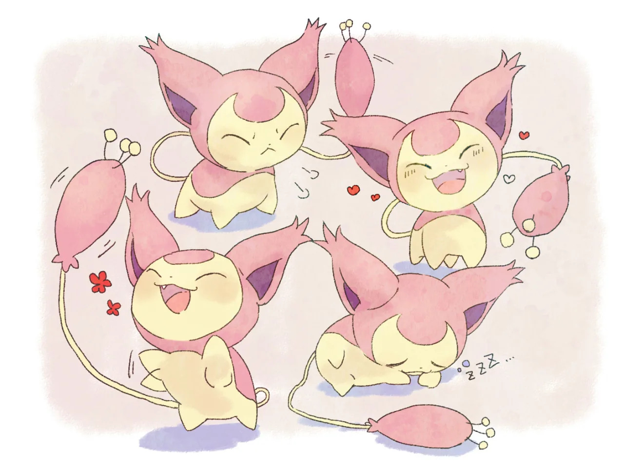 Нормальный покемон третьего поколения. Внешне напоминает кошку небольшого размера с овальным хвостом, на кончике которого располагаются антенки. Озорной и очень добрый покемон. Любит гоняться за своим хвостом, из-за чего довольно часто страдает от головокружения. Эволюционирует с помощью лунного камня.