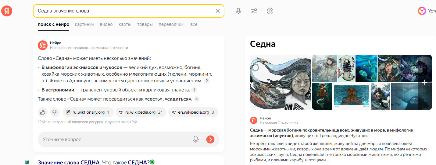 Седна значение.