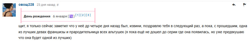 щит, я только сейчас заметил что у неё др четыре дня назад был, извини, поздравлю в следующий раз, а пока, с прошедшим, одна из лучших девах франшизы и прародительница всех альтушек (я пока ещё не дошел до серии где она появилась, но уже предвкушаю что она будет одной из лучших)