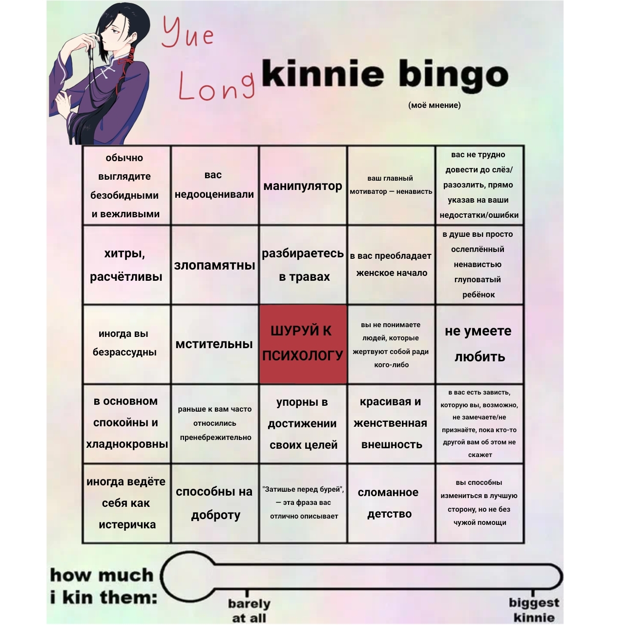 Понравился персонаж, решила кинни бинго с ним попробовать сделать. Мб кому-то нужно (✿◠‿◠)