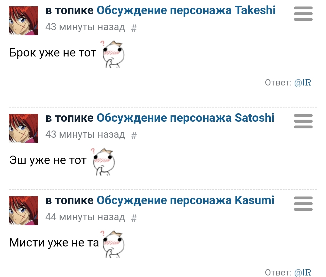 @Piaoliang@Experimental IR, просто решил вспомнить как зовут главного соперника Эша(вроде Гэри или Гари), который с 1 серии с его деревни соперник. Захожу, а тут имена не понять какие, я в просмотре покемонов остановился на появлении Чикариты в 3 сезоне, но это было лет 5 назад, думаю как-нибудь начать с начала 3 сезона смотреть