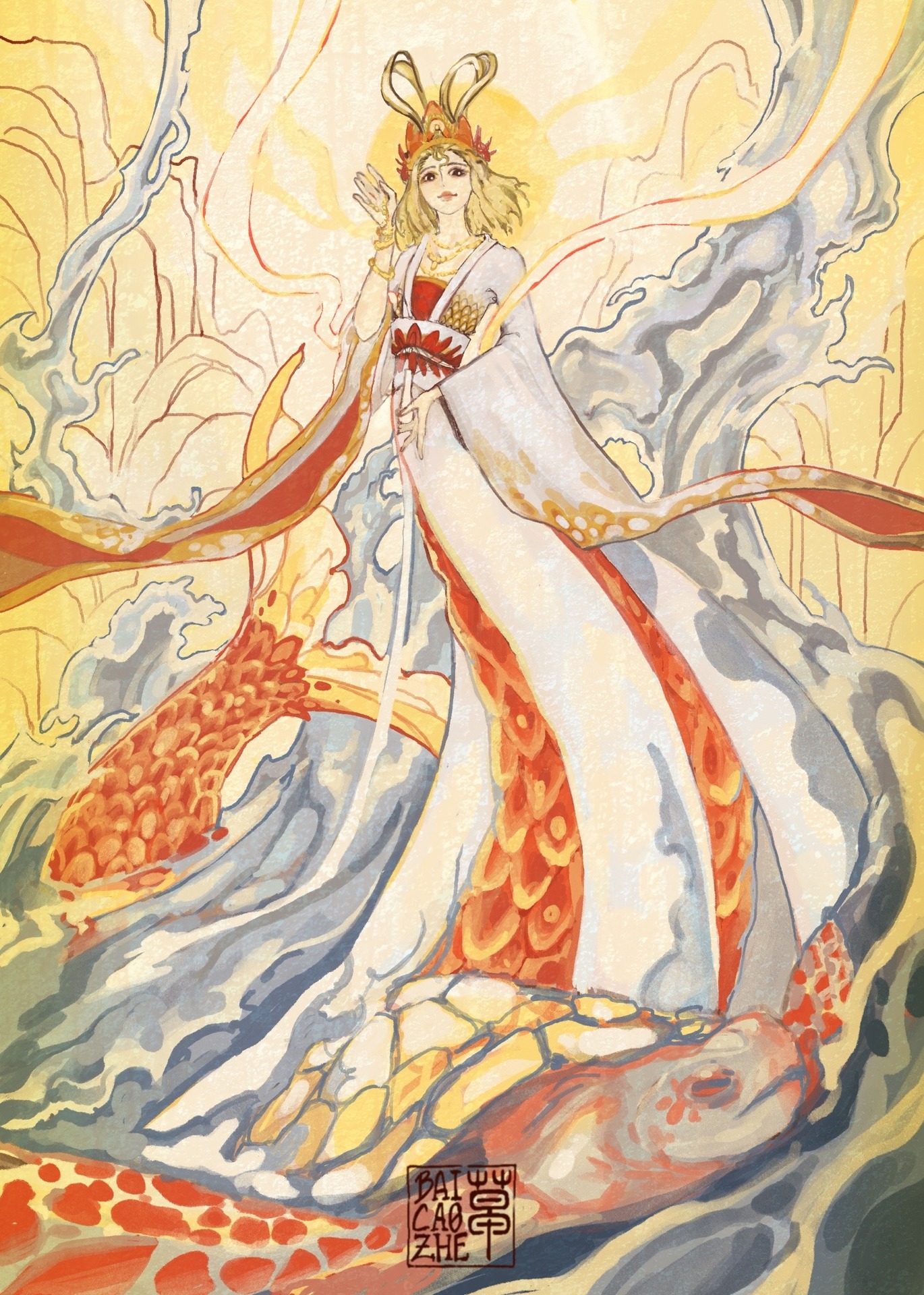 Русалка-золотая рыбка, правительница королевства Рюгу, жена короля Нептуна и мать Фукабоси, Рюбоси, Мамбоси и Сирахоси. Благодаря встречи с Мьёсгардом стала первым обитателем Острова Рыболюдей, побывавшим на суше и заключившим соглашение с Мировым Правительством.