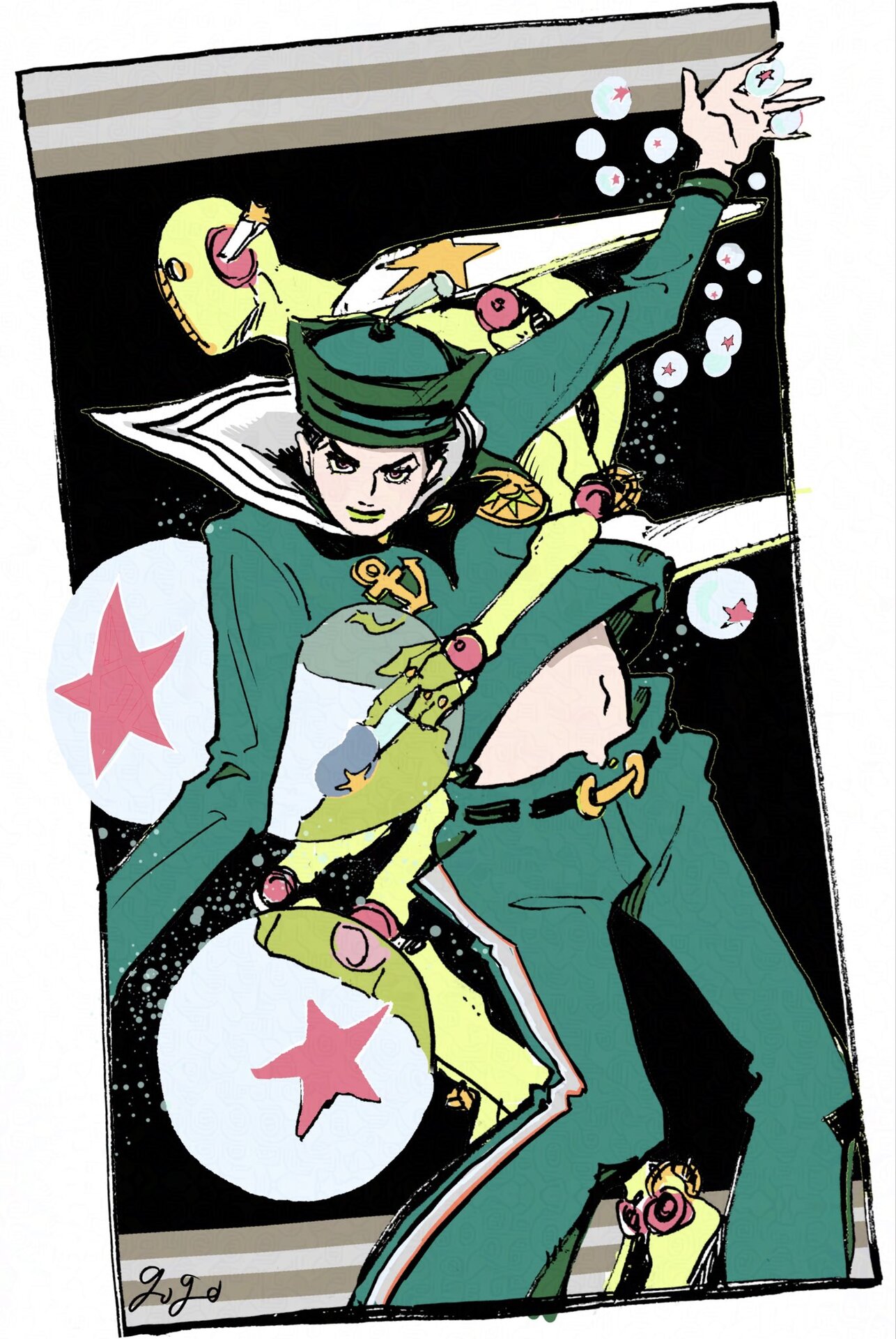 Позже выясняется, что Джоскэ является результатом слияния тел Йошикагэ Киры и Джозефуми Куджо, и дополнительная пара яичек досталась ему от Киры. Желает получить фрукт Рокакака ради спасения жизни Холли Джостар-Киры.