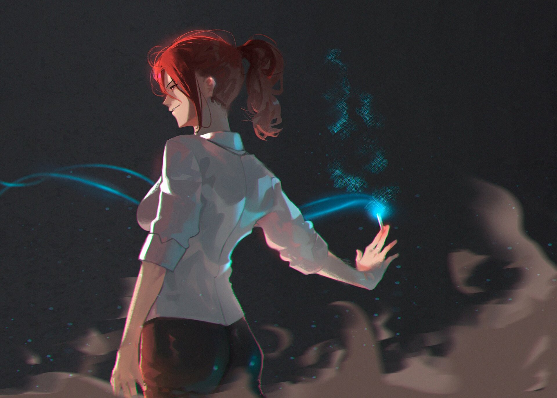 У Токо красный цвет волос и глаз, а зрачок вертикальный. Возможно это побочный эффект того, что она маг, хотя у остальных магов глаза были обычными.