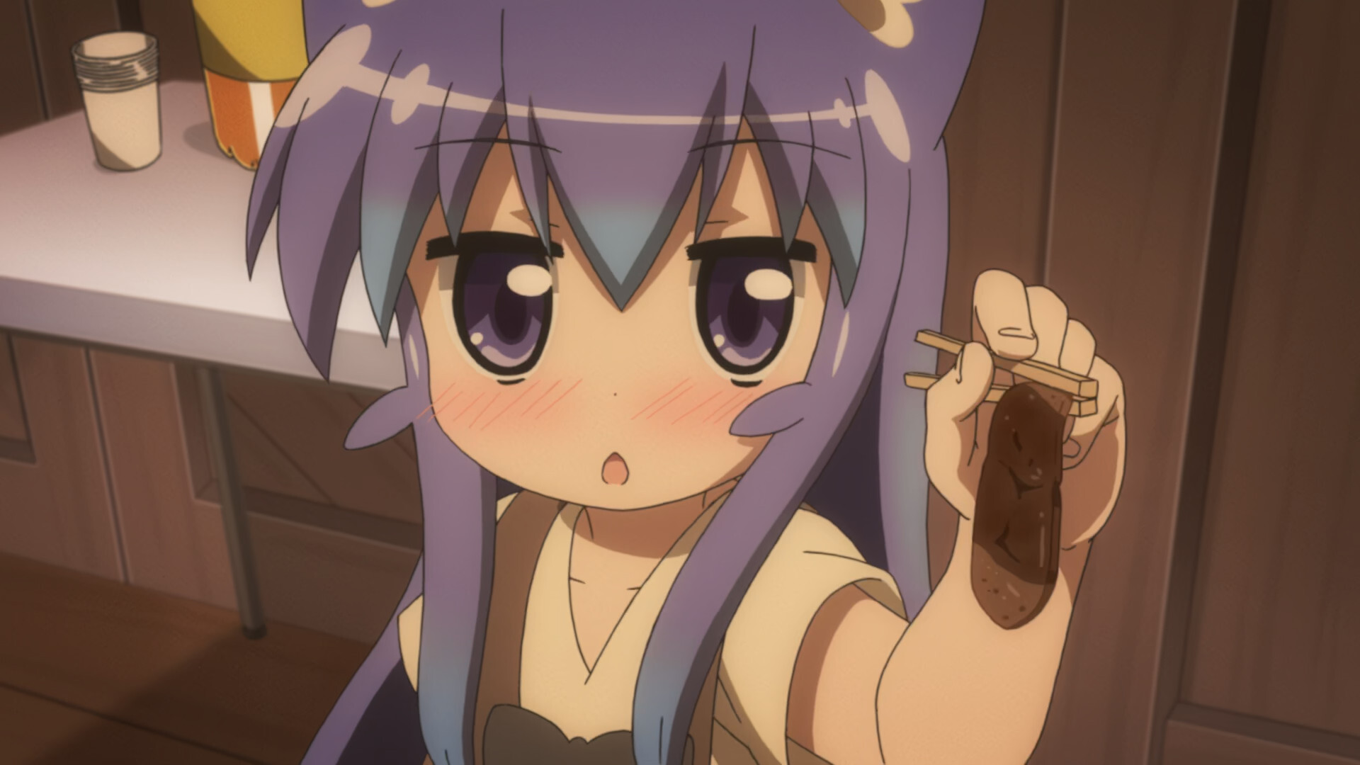 гладит Цумики по голове, у той появляются кошачьи ушки.
