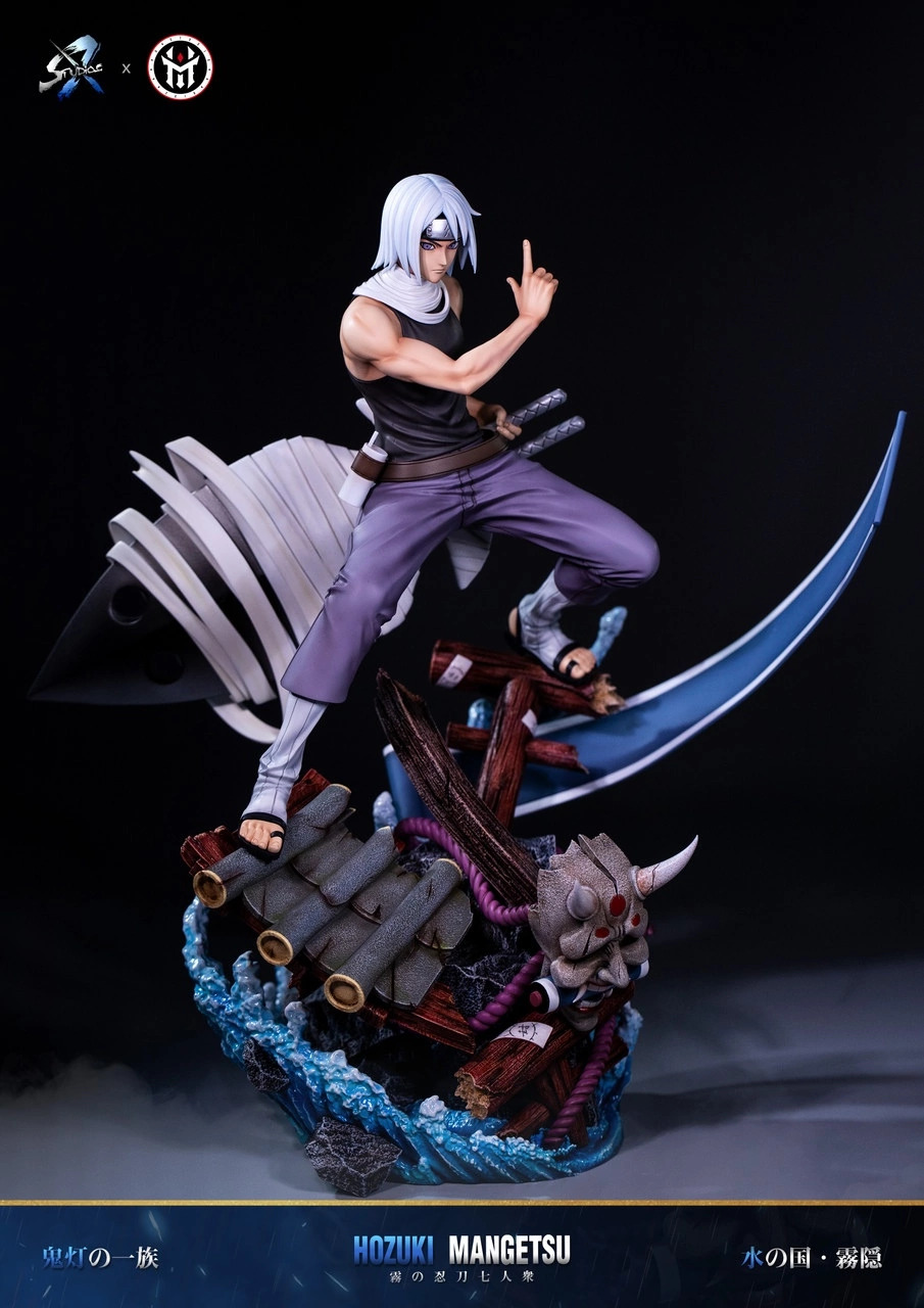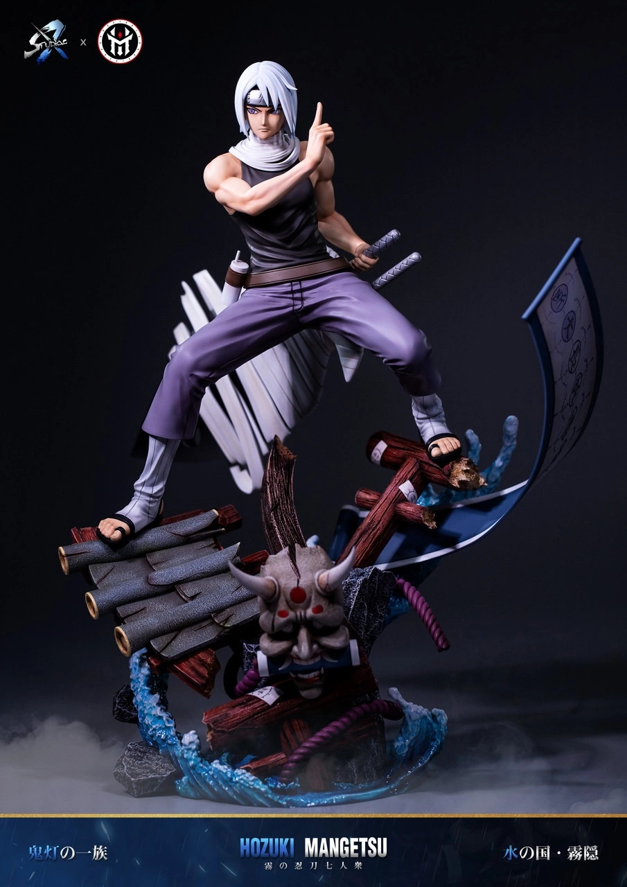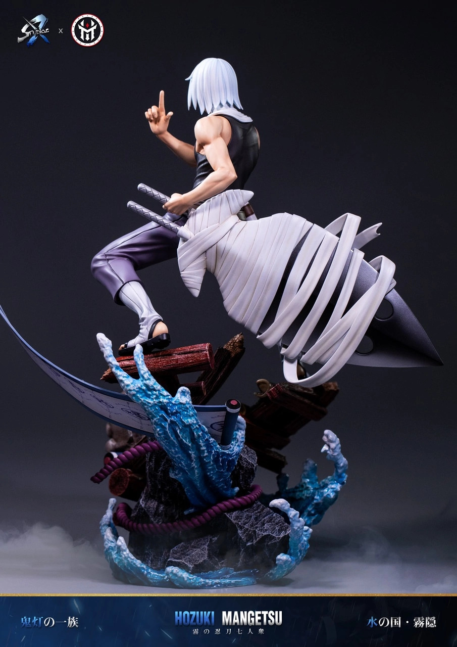 Шиноби Деревни скрытого тумана, а также член предыдущего поколения «Семи мечников Тумана». Мангэцу, как и его младший брат Суйгэцу, член клана Хозуки, прекрасно владеющий стихией воды, что неоднократно было показано в аниме. Кроме того, он единственный представитель «Семи мечников Тумана», который научился владеть всеми мечами организации. Как и брат, Мангэцу умеет превращать своё тело в воду, что защищает его тело от физических атак. Умер при неизвестных обстоятельствах. В Четвёртой мировой войне его призывает Кабуто Якуши и принуждает к битве вместе с бывшими товарищами против Альянса. В битве его удаётся запечатать.