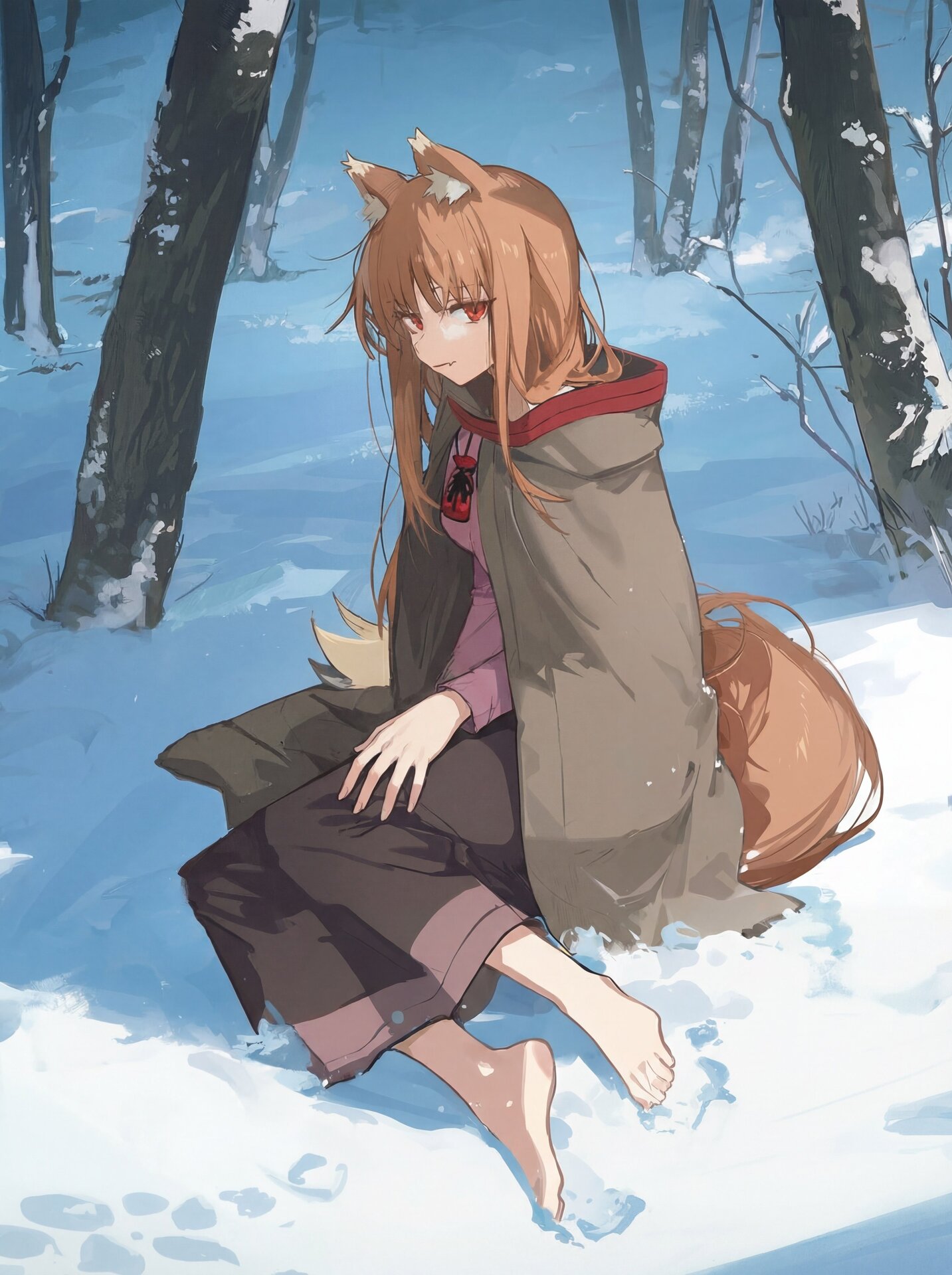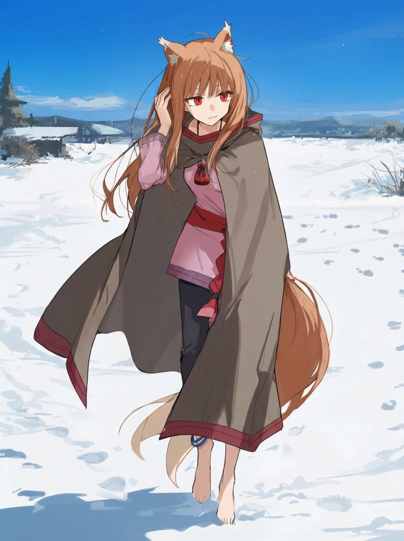 Холо хорошо осознаёт огромную разницу в продолжительности их жизней. Для неё человеческая жизнь словно мгновение. Холо довольно сильно боится этого, хоть и скрывает это за своими шутками. Холо любит подшучивать над Лоуренсом. Но несмотря на то, что поначалу она шутит о своей привязанности и чувствах к Лоуренсу, она медленно, но верно влюбляется в него. Со временем она также начинает испытывать к Лоуренсу глубокие чувства.