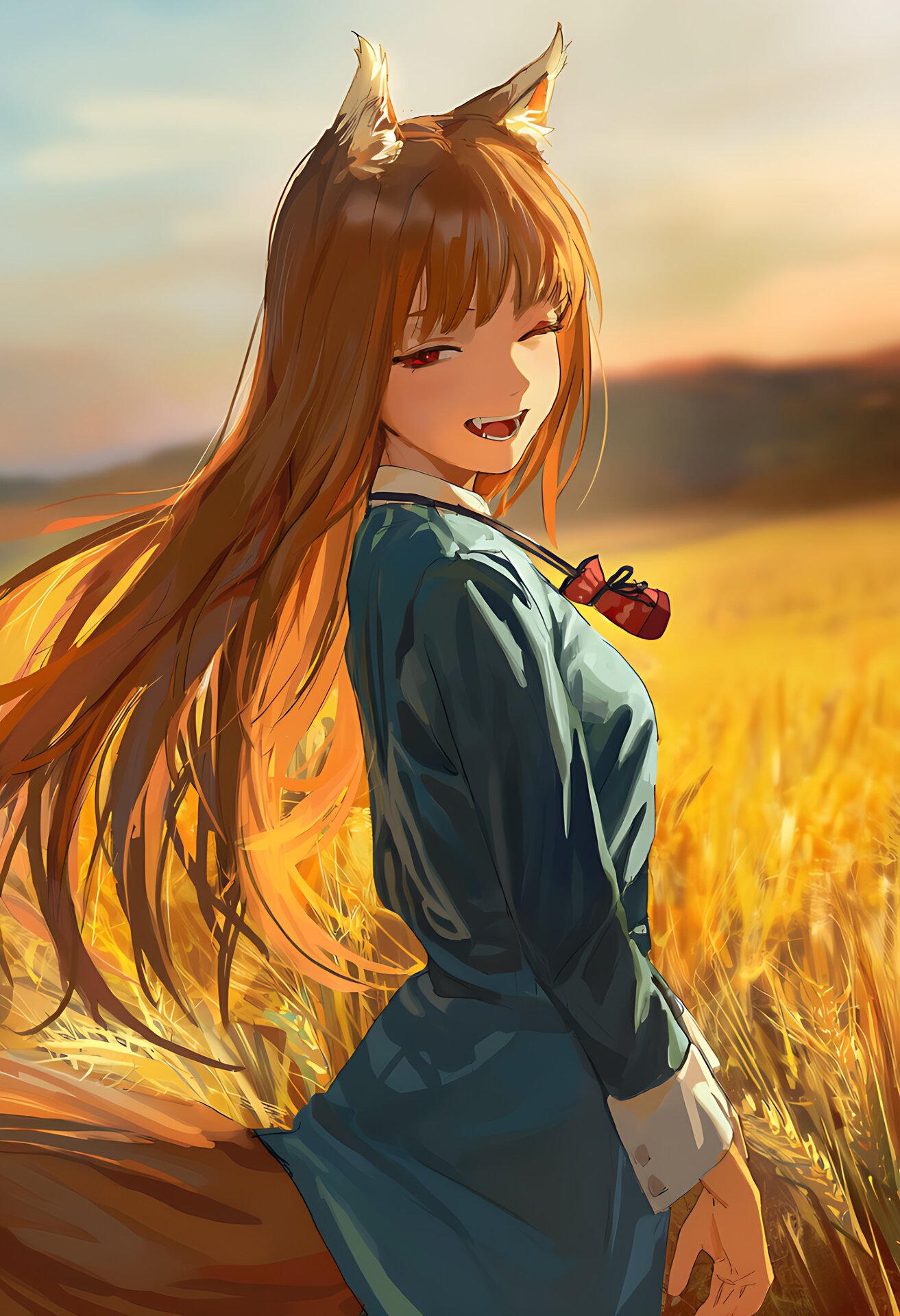 Волчица, божество урожая родом из северных земель, которые называются Ёицу. Она заключила договор с жителями городка и деревни Пасуроэ, пообещав обеспечивать хороший урожай пшеницы каждый год. Но время шло, и жители города и деревни стали всё меньше верить в Холо, и уже не надеялись на неё, как когда-то. Поэтому Холо решила покинуть деревню, спрятавшись в пшенице, в телеге странствующего торговца Лоуренса, и вернуться на север, в то место, где она родилась, и которое считает своим домом.
