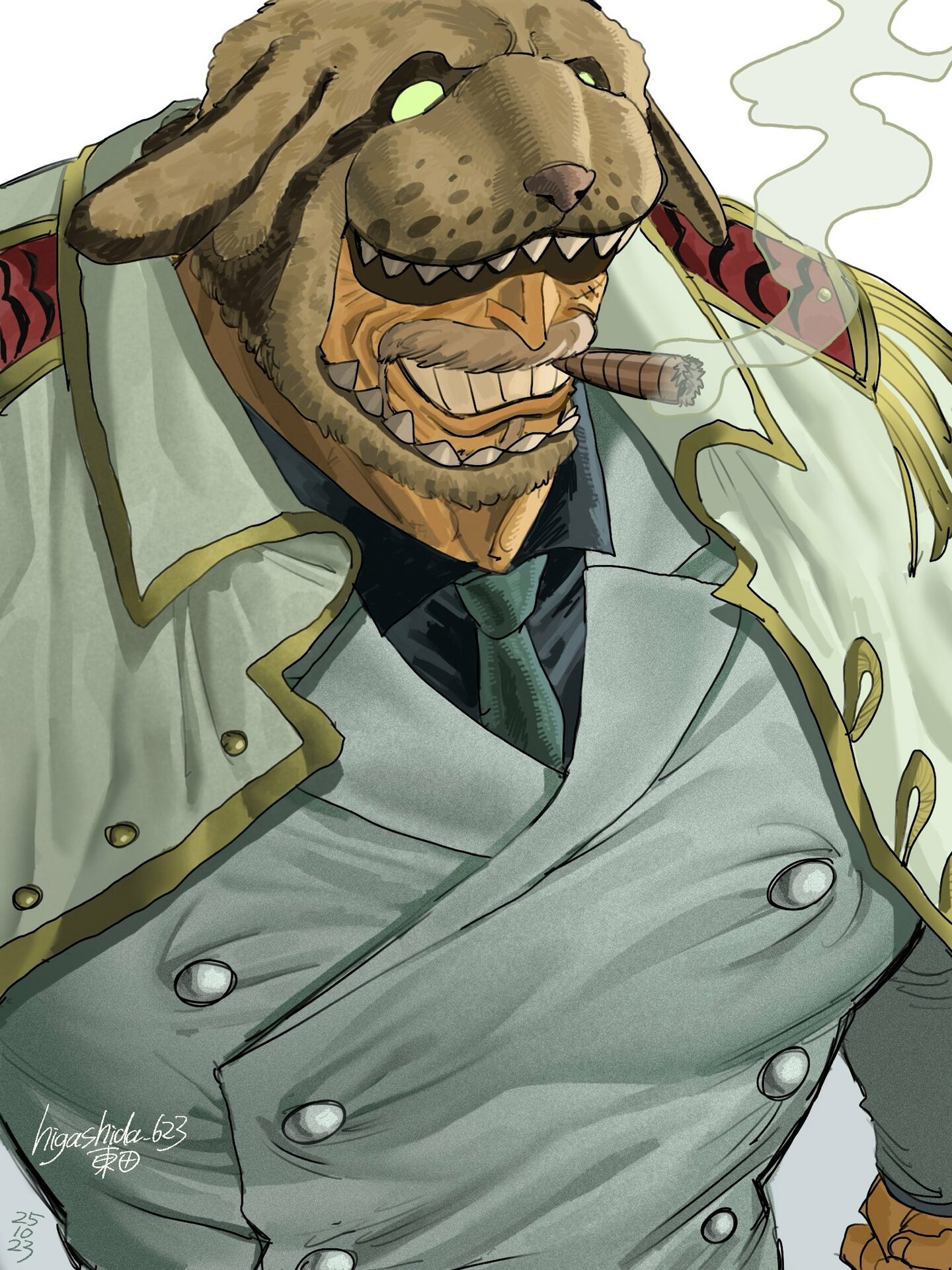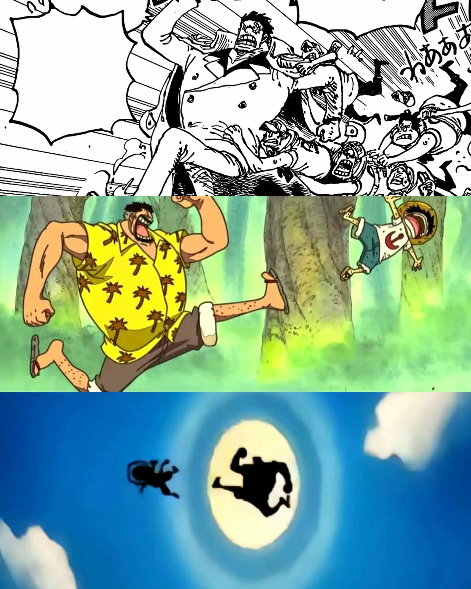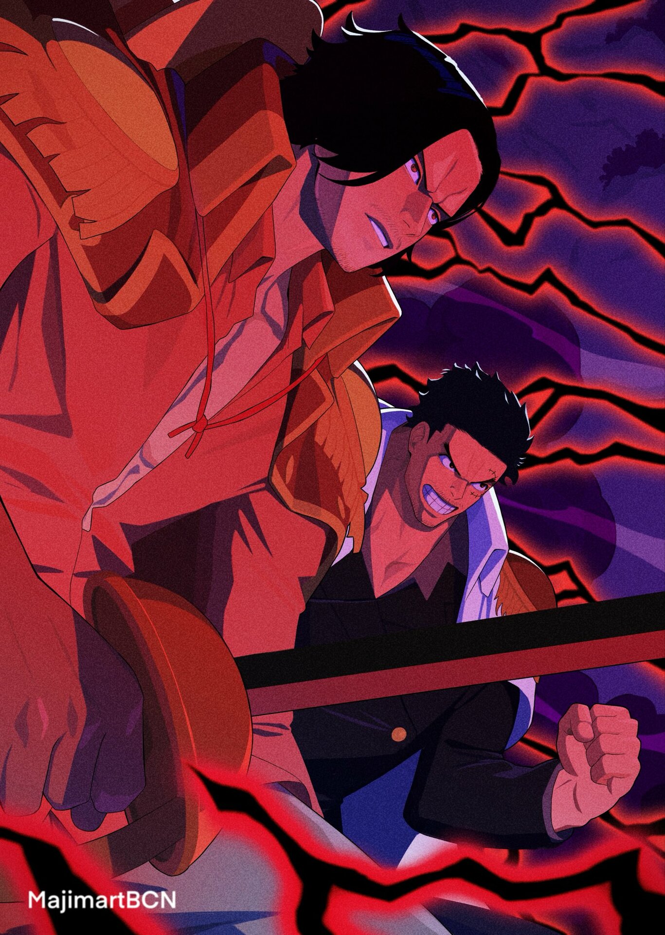 Во время битвы при Маринфорде выступил против Луффи, но не смог сражаться против своей семьи и был повержен Луффи. После убийства «Огненного Кулака» Эйса был готов убить Акаину, но был остановлен по его же просьбе Сэнгоку. Обладает Волей, так как смог ударить Луффи и причинить тому боль, назвав этот удар «Кулаком любви». После войны с Белоусом подал в отставку из-за того, что не смог спасти Эйса.