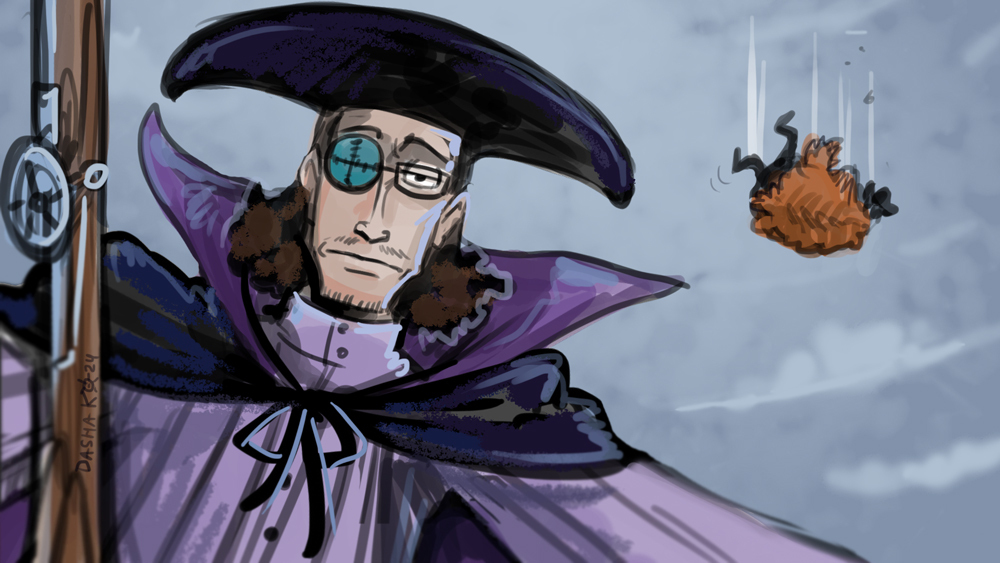 Снайпер Пиратов Чёрной Бороды, известный по прозвищу Сверхзвук, а также капитан третьего корабля. Один из лучших стрелков в мире. Смог подстрелить чаек с совершенно недосягаемого для взгляда расстояния. Съел дьявольский плод Вапу Вапу но Ми, типа парамеция, который позволяет ему перемещать предметы и существ на большое расстояние.