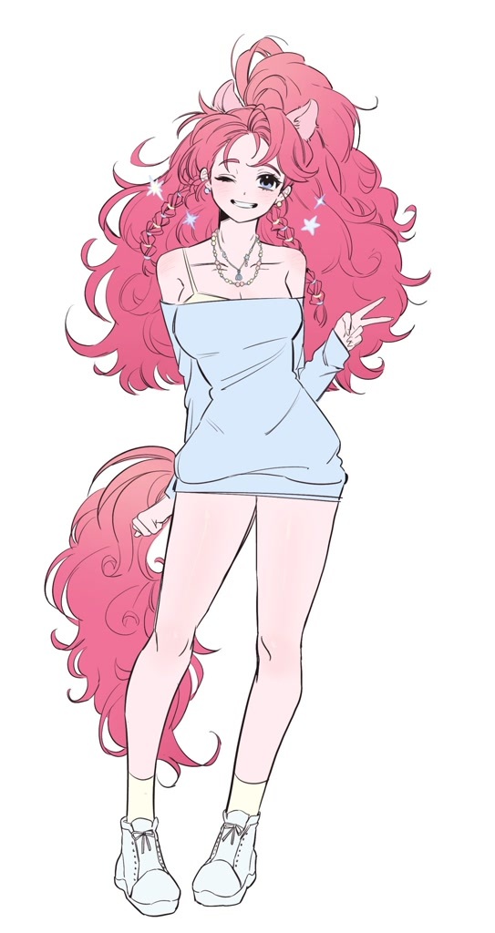 Земная пони. Полное имя — Пинкамина Диана Пай. Предпочитает прыгать вместо обычной ходьбы, при этом издаёт звук мультяшной пружины. Часто появляется в неожиданных местах или обращается напрямую к зрителям. Всегда безмятежна, оптимистична, весела и активна, дружит с каждым жителем Понивилля, хотя и провела всё детство на каменной ферме вместе со своими флегматичными сестрами: Мод Пай, Лаймстон Пай и Марбл Пай. Ныне живёт и работает в «Сахарном дворце» (или « Сахарный уголок»), так как является прирождённым кондитером. Очень любит сладости, но вместе с тем и острые соусы, вечеринки и незлые розыгрыши, шутки и чудачества (даже если они выглядят глупо, а окружающим совсем не до смеха). Прекрасно исполняет весьма оригинальные песни собственного сочинения, однако им практически никто не рад. Также способна предсказывать различные неприятности благодаря своей «Пинки-интуиции» . Олицетворяет собой элемент смеха. Её отличительный знак — три воздушных шарика. Когда Пинки сильно грустит (ведёт себя вразрез своему элементу), её грива и хвост выпрямляются и тускнеют.