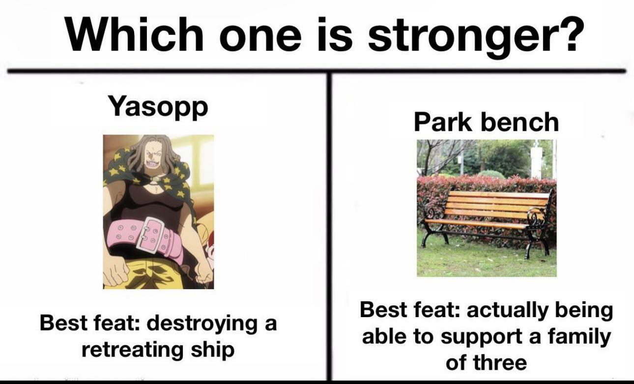 Отец Усоппа и снайпер команды Красноволосого. Выглядит очень серьёзным, хотя умеет развеселить своих соратников. Усопп, сын Ясоппа, всегда хотел быть похожим на него из-за его храбрости. Известен как очень меткий стрелок. Отличается своим необычным плащом со звёздами, короткими штанами и тёмно-синей футболкой. Также у Ясоппа есть большой зелёный кушак, на котором висит маленький мешочек. В качестве оружия использует ружьё, до этого использовал пистолет.